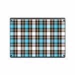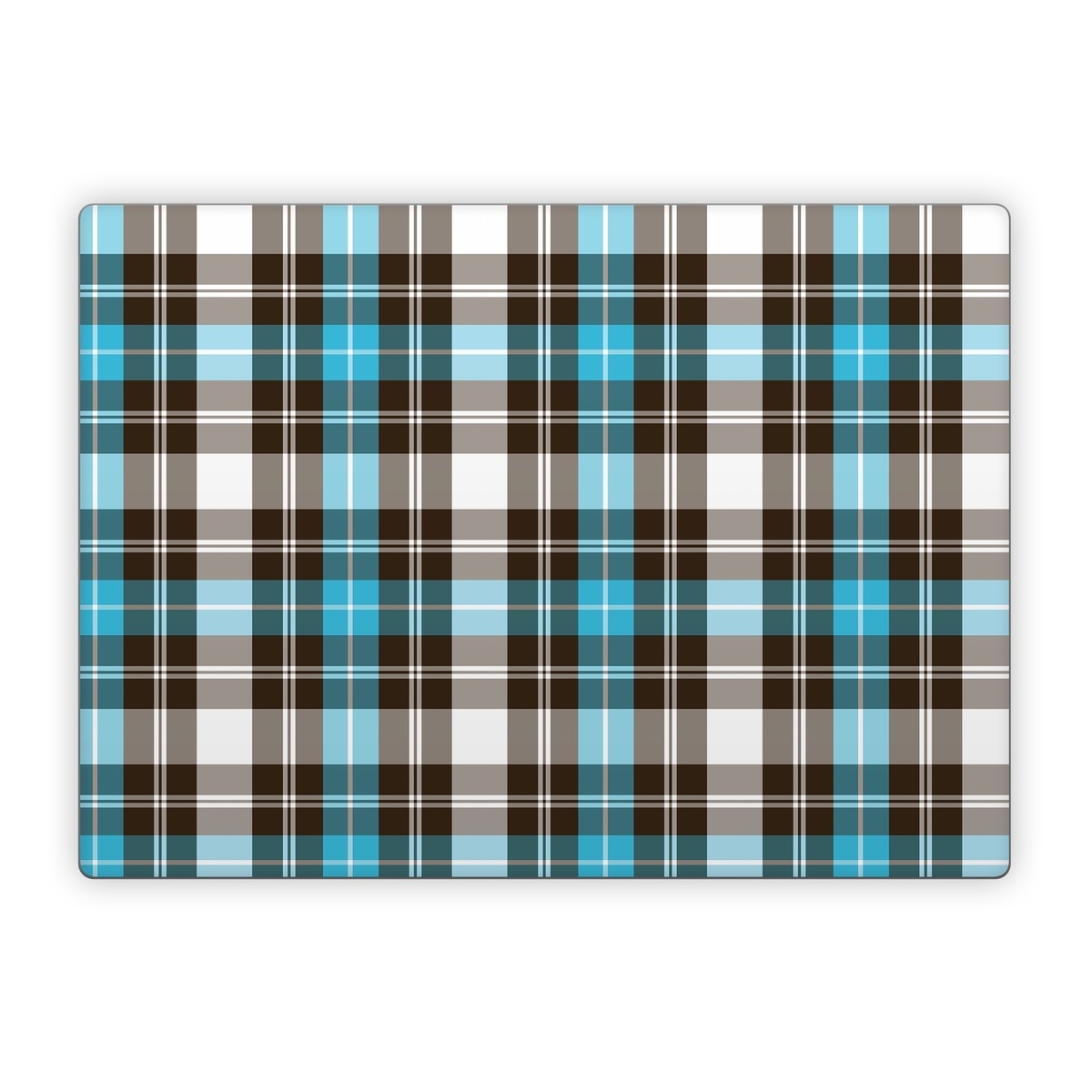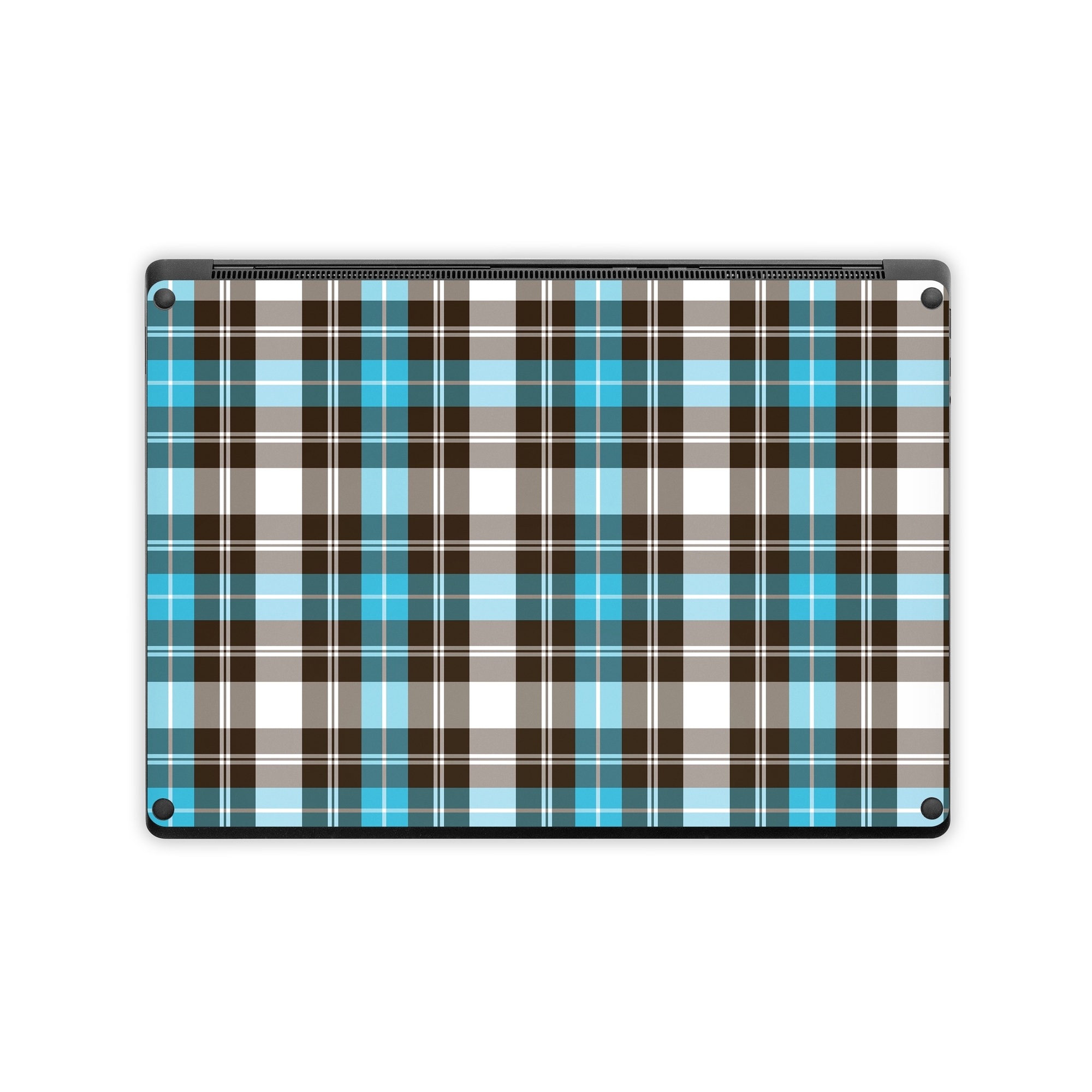iStyles Microsoft Surface Laptop Series Skin design of Plaid, Pattern, Tartan, Turquoise, Textile, Design, Brown, Line, Tints and shades, with gray, black, blue, white colors, and tagged with patterns.