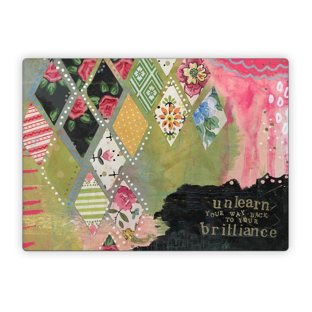 iStyles Microsoft Surface Laptop Series Skin design of Green, Pink, Textile, Pattern, Art, Visual arts, Magenta, Linens, Quilting, with red, pink, black, green colors, and tagged with flowers, signs, patterns, hopeful, inspiration, inspire, quotes.