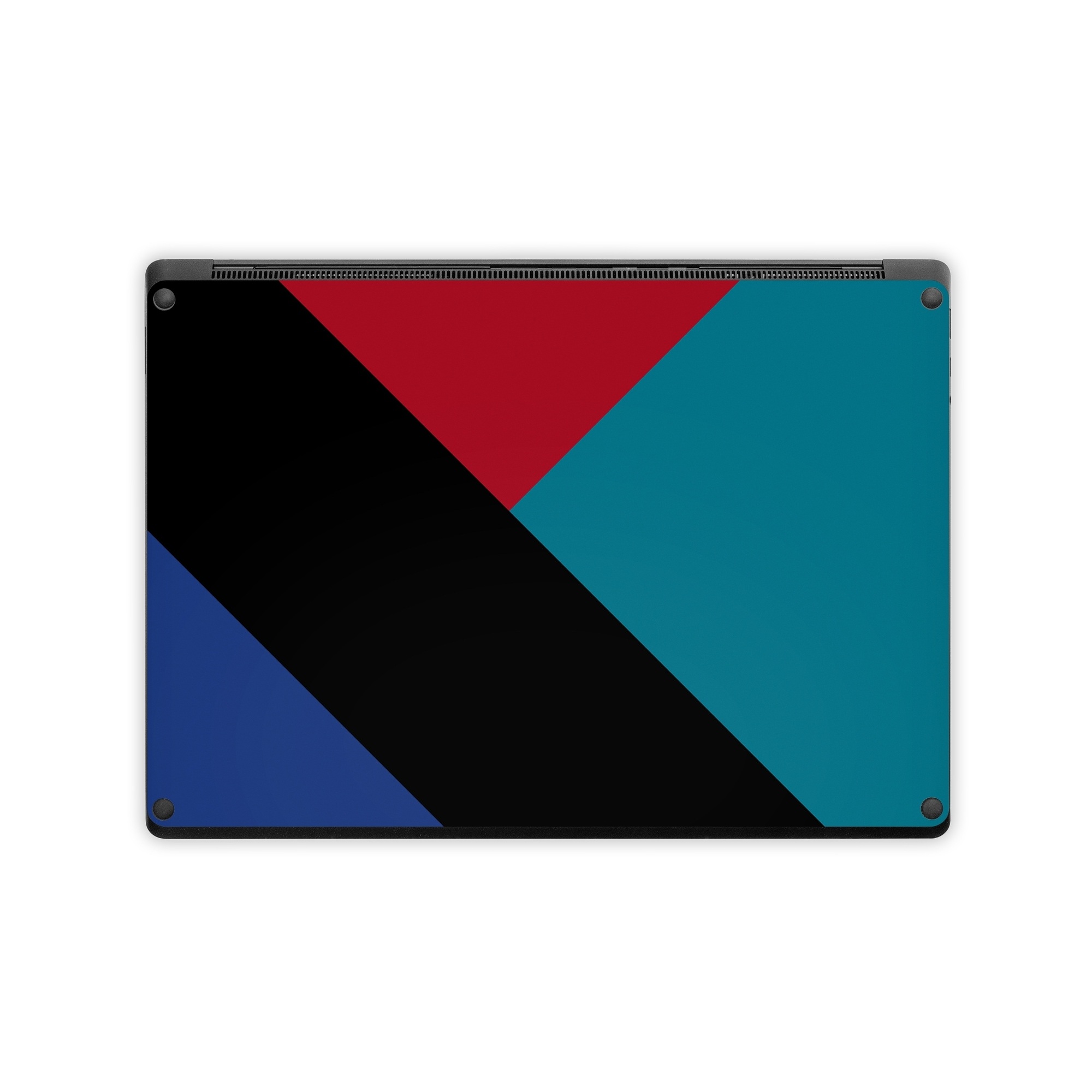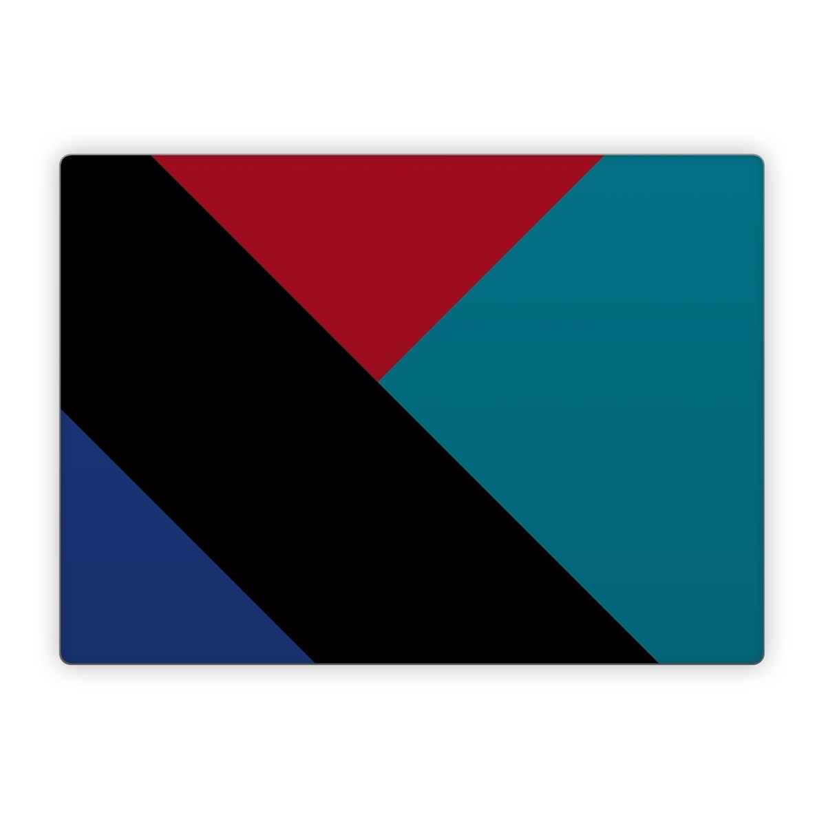 iStyles Microsoft Surface Laptop Series Skin design of Blue, Green, Turquoise, Azure, Teal, Electric blue, Line, Pattern, Design, Graphic design, with black, blue, red colors, and tagged with patterns, block, blocking, color, colorblock, geometric, shape, simple.