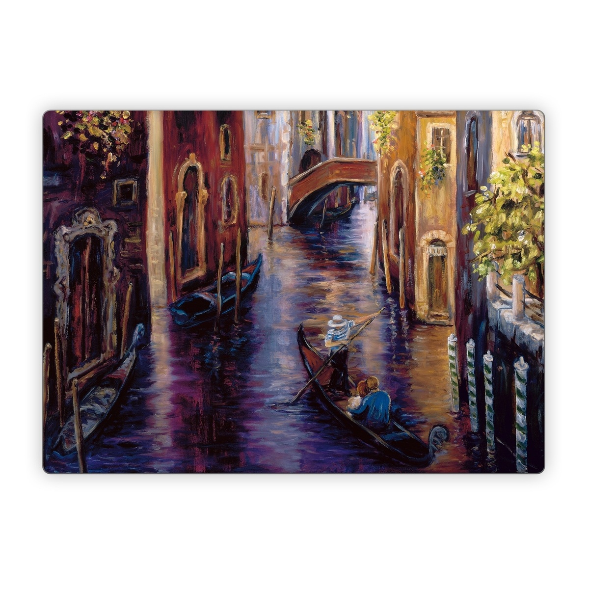iStyles Microsoft Surface Laptop Series Skin design of Painting, Watercolor paint, Waterway, Gondola, Canal, Art, Modern art, Acrylic paint, Visual arts, Building, with black, gray, red, green, blue, pink colors, and tagged with fineart, urban.