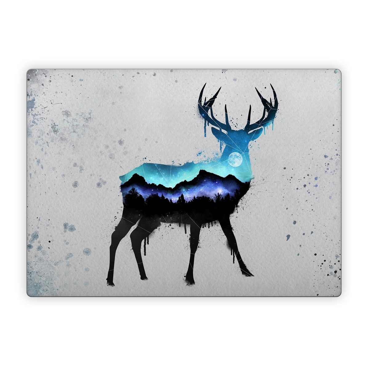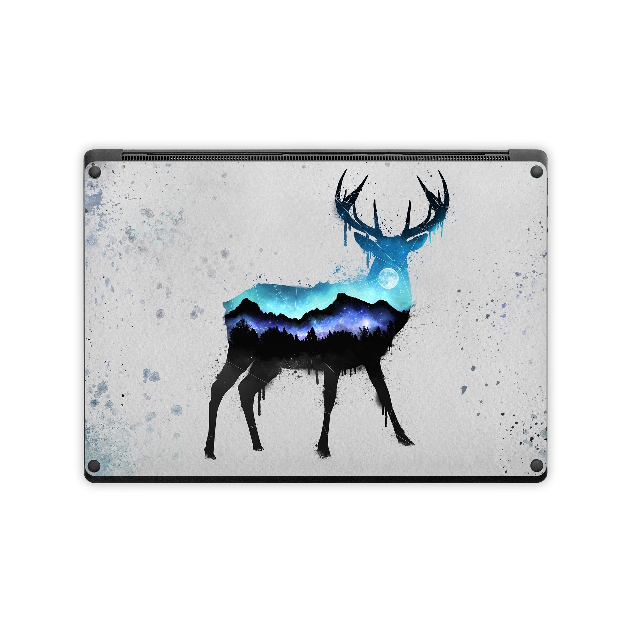 iStyles Microsoft Surface Laptop Series Skin design of Reindeer, Deer, Illustration, Watercolor paint, Art, Elk, Wildlife, Drawing, Paint, Graphics, with gray, black, blue, purple, white colors, and tagged with animals, nature, space, animals, deer, moon, nature, night, stars, watercolor.