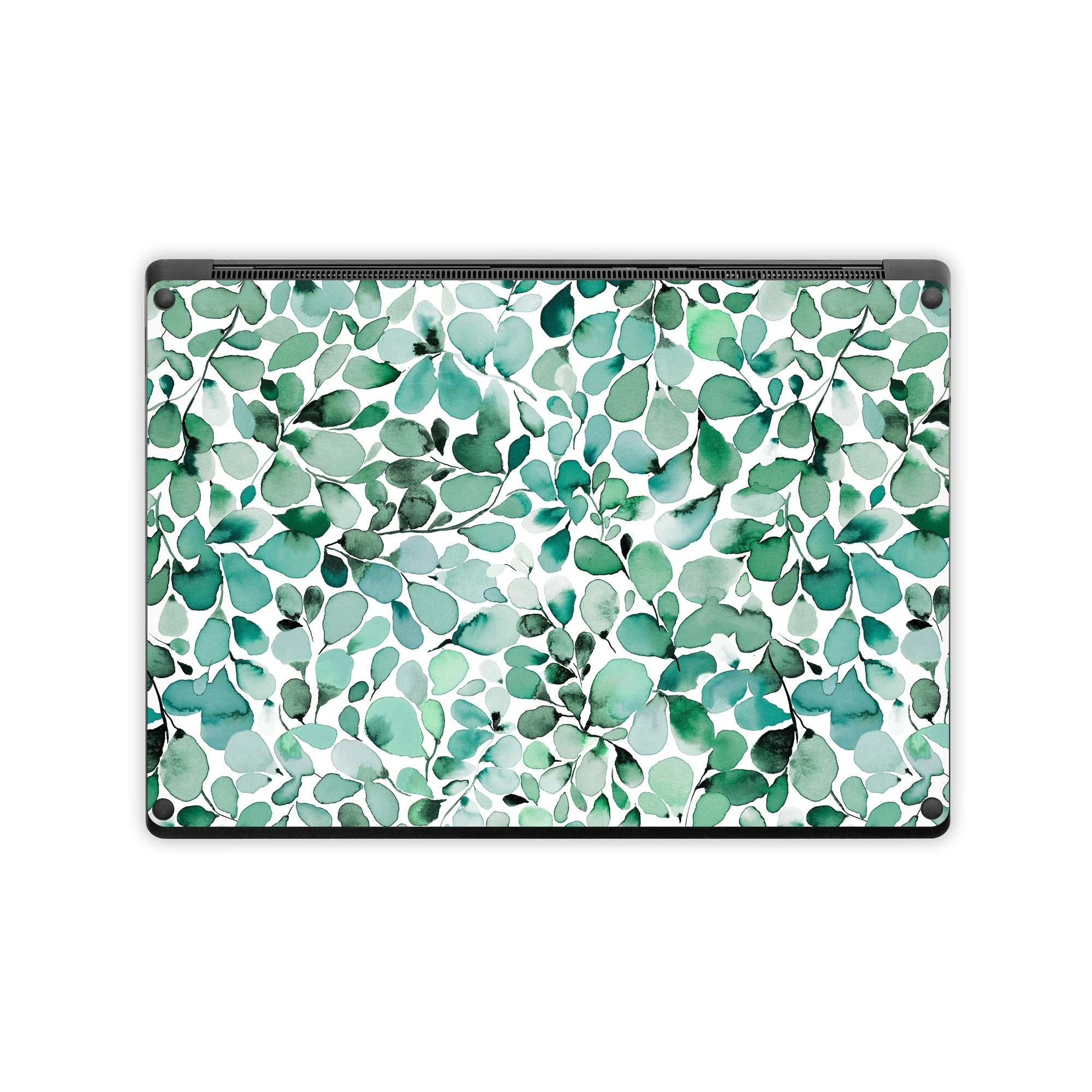 iStyles Microsoft Surface Laptop Series Skin design of Azure, Line, Aqua, Pattern, Art, Symmetry, Electric blue, Circle, Creative arts, Terrestrial plant, with white, green, black colors, and tagged with patterns, nature, filigree, garden, green, leaves, nature, paint, painting, teal, turquoise, watercolor.