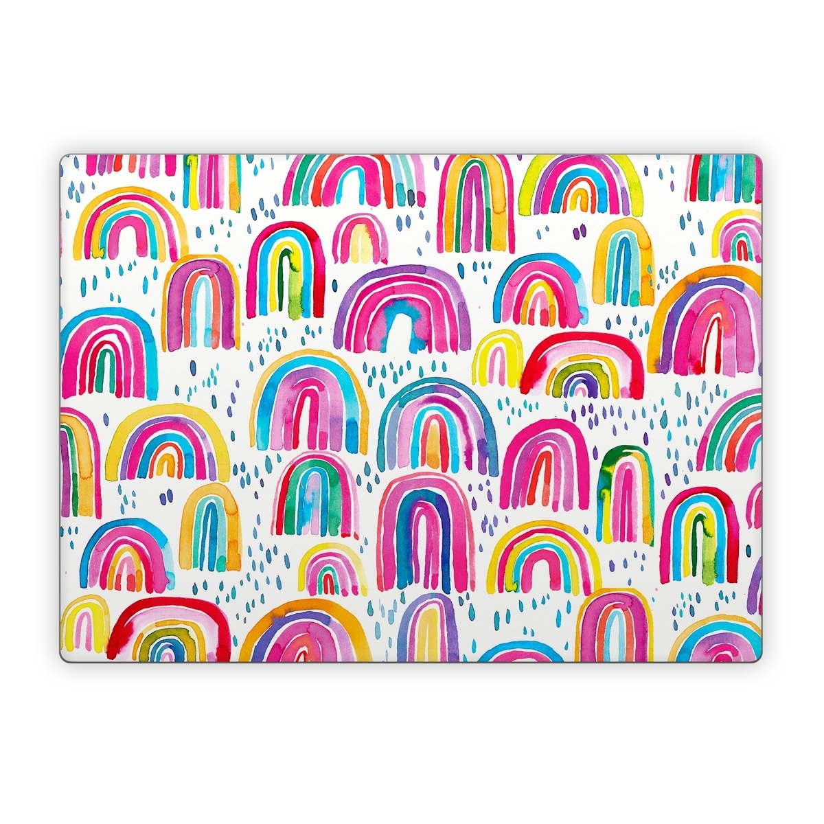 iStyles Microsoft Surface Laptop Series Skin design of Line, Pattern, Design, with white, orange, yellow, blue, pink, red, green colors, and tagged with patterns, nature, abstract, abstract, bright, colorful, rain, nature, rainbow, watercolor.