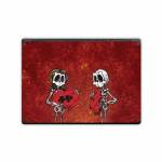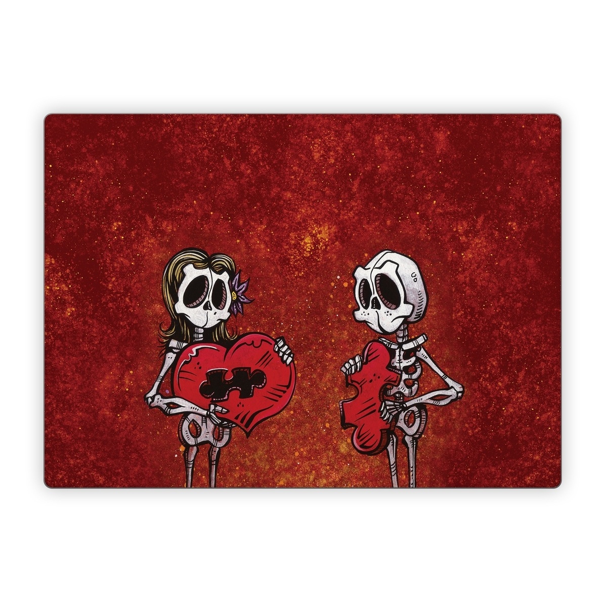 iStyles Microsoft Surface Laptop Series Skin design of Font, Tints and shades, Bone, Art, Skull, Pattern, Creative arts, Carmine, Visual arts, Rectangle, with white, black, gray, brown, red, yellow, orange colors, and tagged with skulls, hearts, love, couple, perfect.