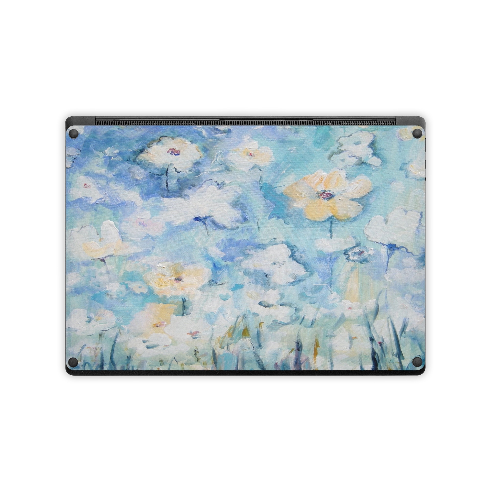 iStyles Microsoft Surface Laptop Series Skin design of Blue, Watercolor paint, Painting, Flower, Plant, Art, Acrylic paint, Wildflower, Visual arts, Floral design, with gray, blue colors, and tagged with patterns, flowers.