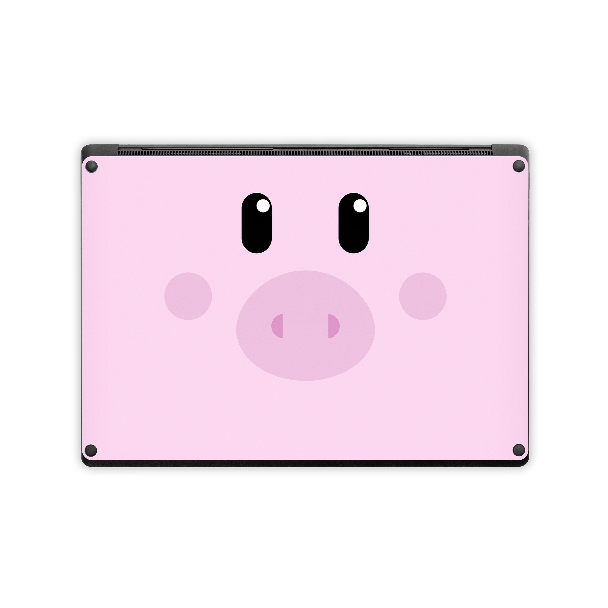 iStyles Microsoft Surface Laptop Series Skin design of Pink, Cartoon, Violet, Nose, Purple, Snout, Suidae, Material property, Illustration, Animation, with pink, black, white colors, and tagged with animals, animals, cute, faces, farm, simple.