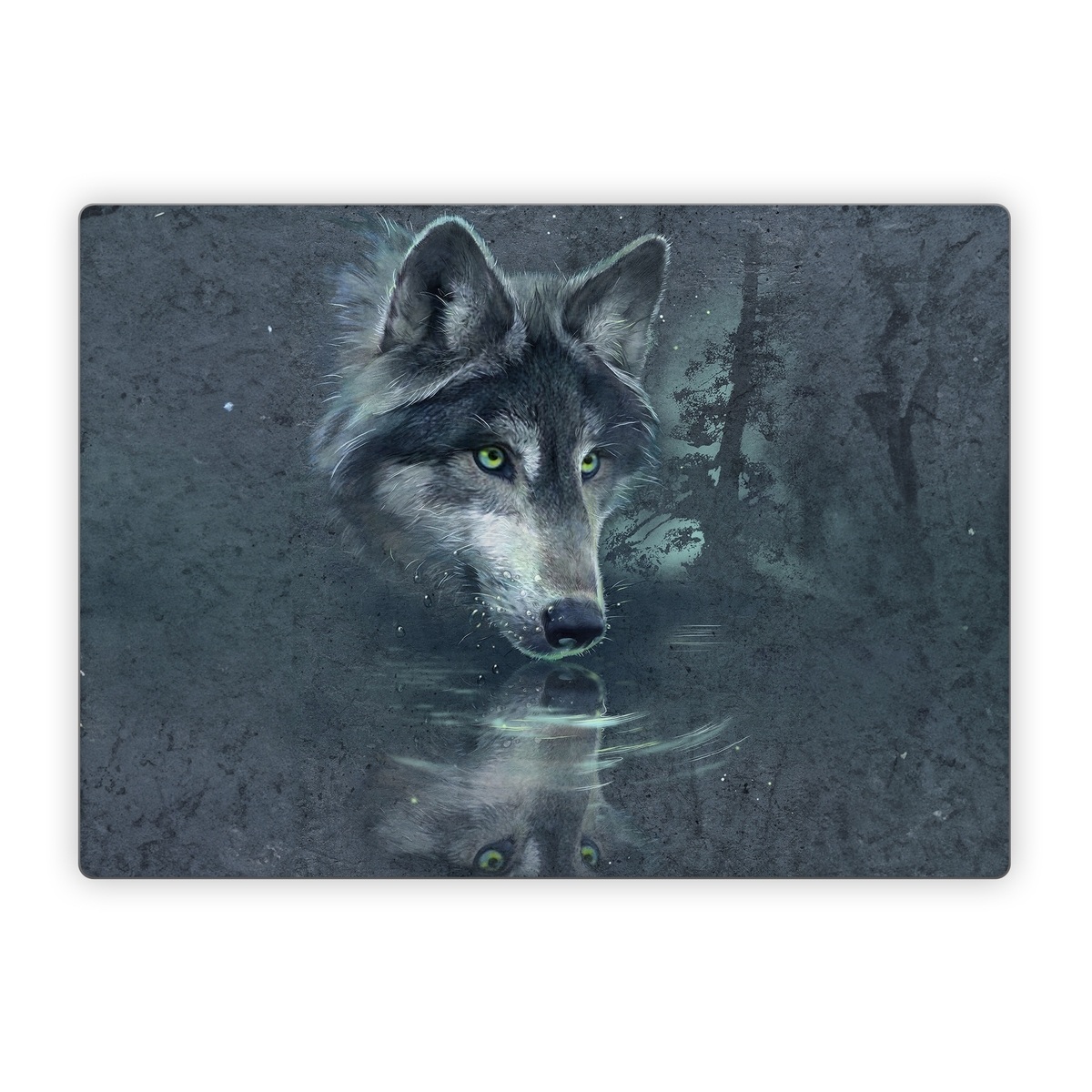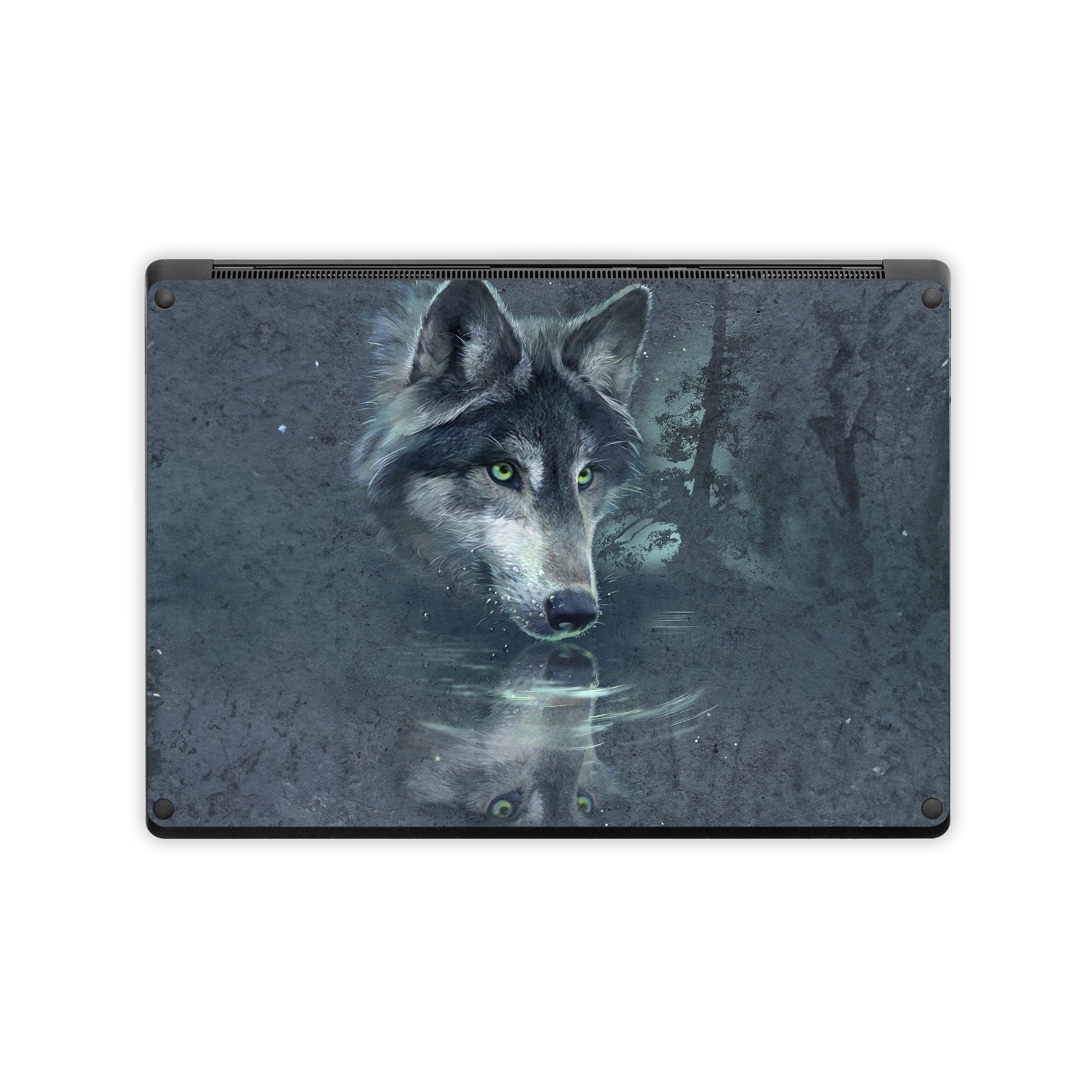 iStyles Microsoft Surface Laptop Series Skin design of Wolf, Canidae, Wildlife, Red wolf, Canis, canis lupus tundrarum, Snout, Saarloos wolfdog, Wolfdog, Carnivore, with black, gray, blue colors, and tagged with animals.