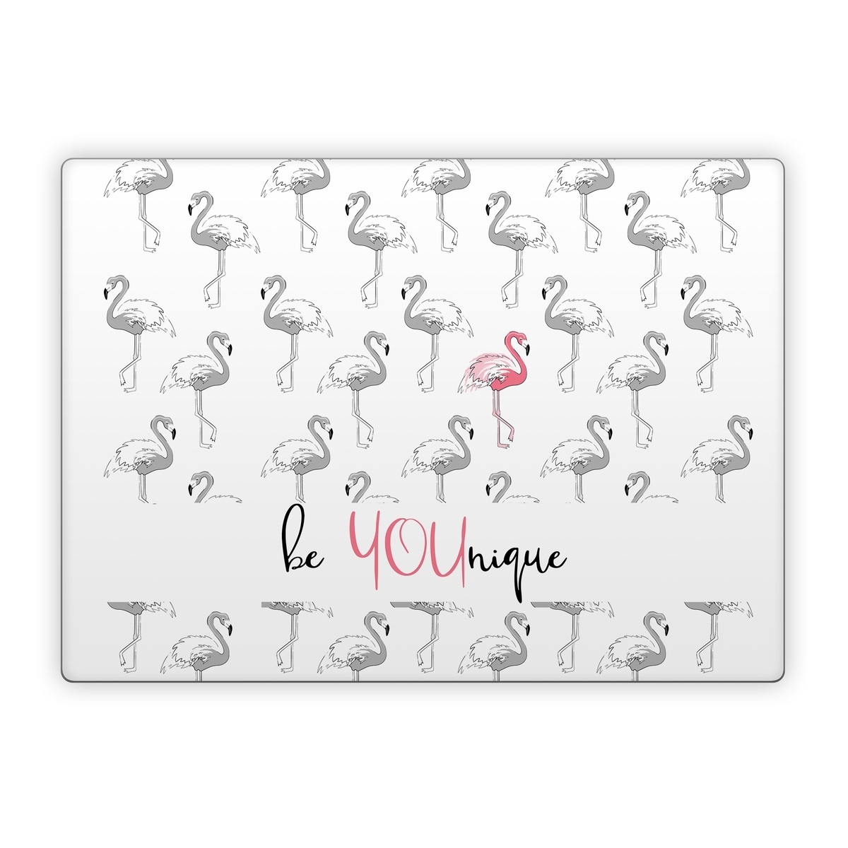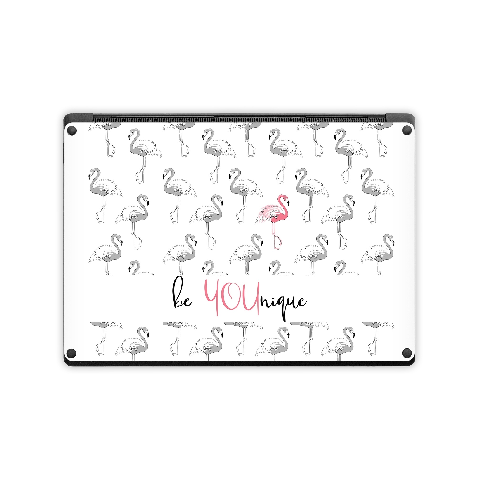 iStyles Microsoft Surface Laptop Series Skin design of White, Organism, Mushroom, Line, Font, Bird, Art, Illustration, Pattern, Line art, with white, black, pink, gray colors, and tagged with signs, animals, patterns, bird, flamingo, grey, pink.