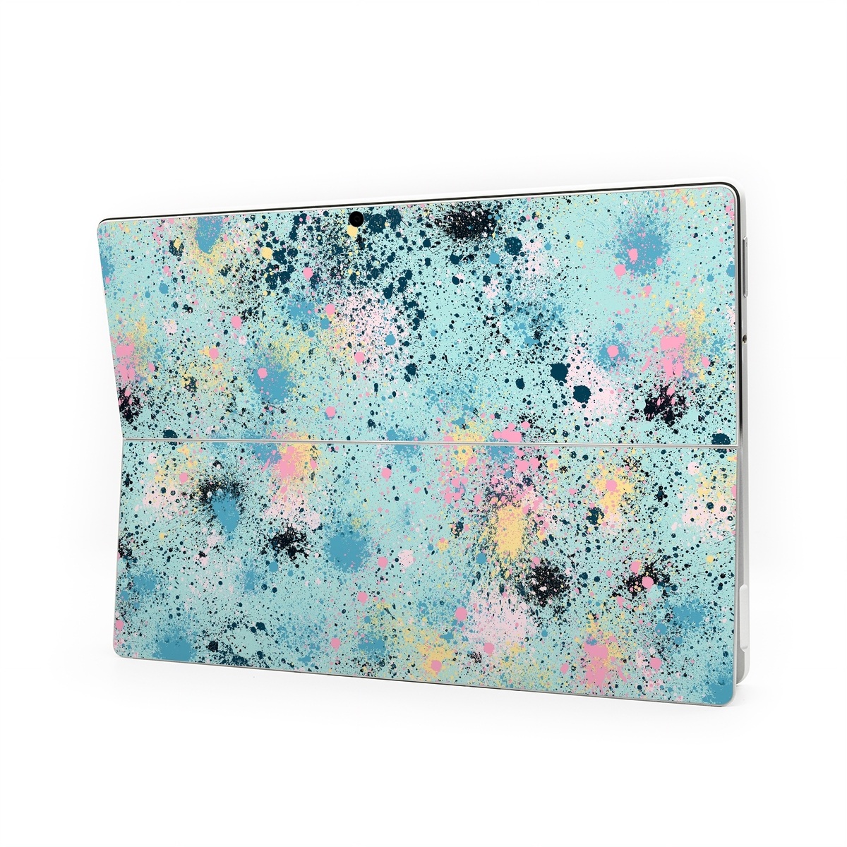 iStyles Microsoft Surface Pro Series Skin design of Colorfulness, Art, Paint, Aqua, Art paint, Pattern, Tints and shades, Magenta, Electric blue, Creative arts, with blue, black, pink, yellow colors, and tagged with patterns, abstract, blue, collage, ink, paint, pink, splatter, yellow.
