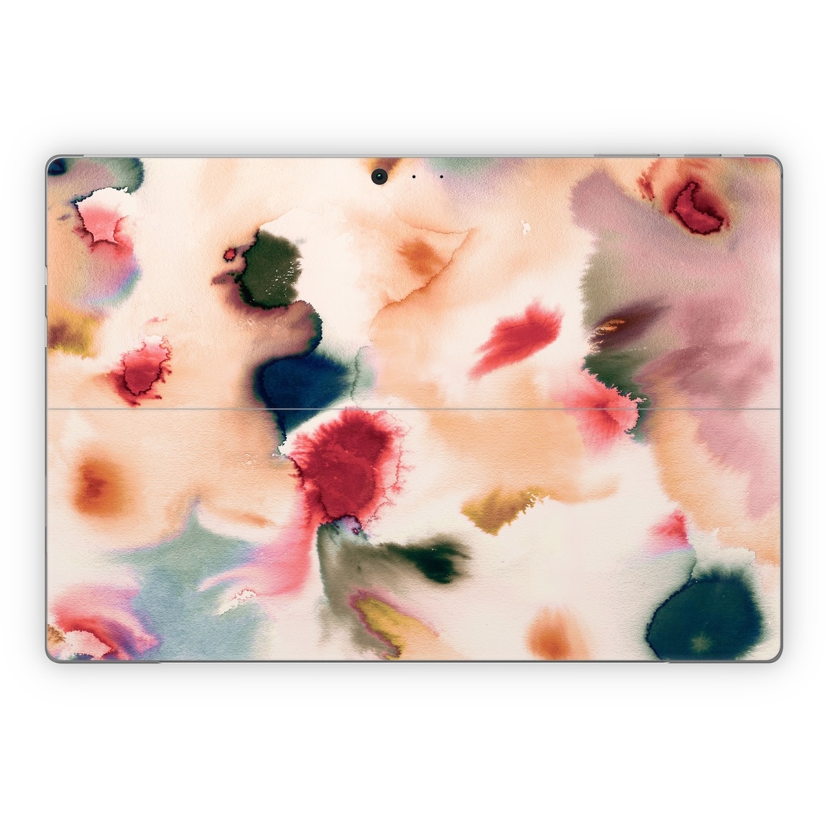 iStyles Microsoft Surface Pro Series Skin design of Petal, Pink, Creative arts, Plant, Tints and shades, Art, Pattern, Porcelain, Close-up, Natural material, with white, blue, red, brown, orange, yellow, green colors, and tagged with patterns, colorful, rainbow, happy.