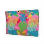 iStyles Microsoft Surface Pro Series Skin design of Organism, Pink, Rectangle, Magenta, Aqua, Art, Symmetry, Pattern, Painting, Electric blue, with pink, green, blue, yellow, orange, red colors, and tagged with patterns, flowers, nature, blue, green, leaf, leaves, orange, palmtree, palms, pink, tropic, tropical, tropics, yellow.