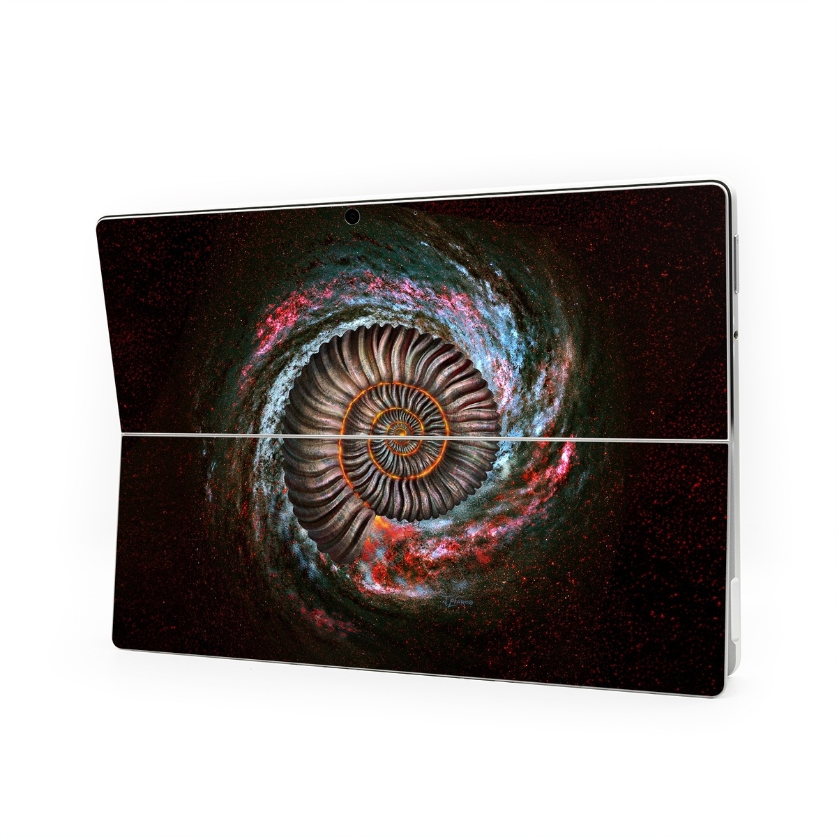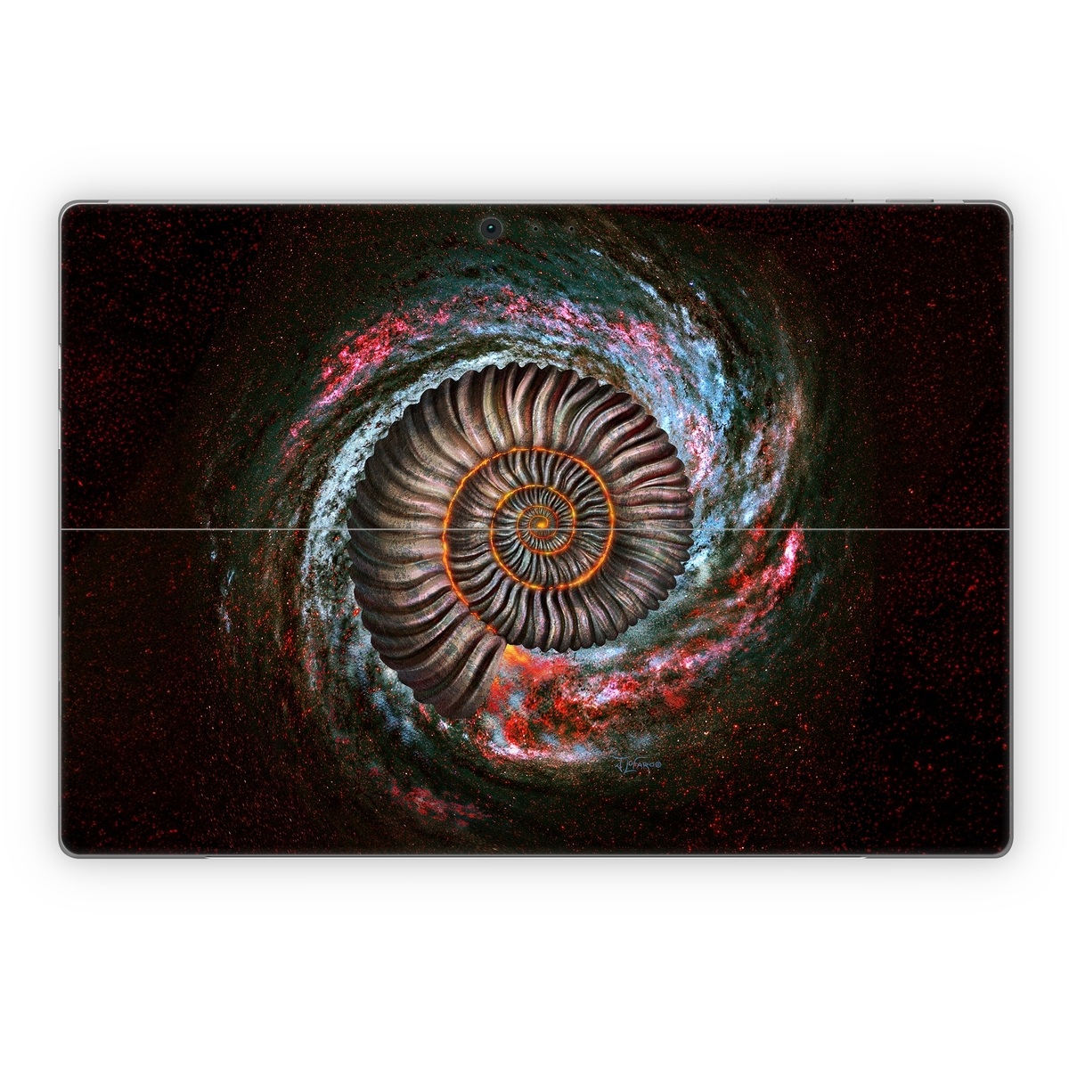 iStyles Microsoft Surface Pro Series Skin design of Spiral, Fractal art, Vortex, Circle, Art, Ammonoidea, with black, brown, red, white, blue, green colors, and tagged with animals, patterns, space, celestial, galactic, galaxy, outerspace, sci-fi.
