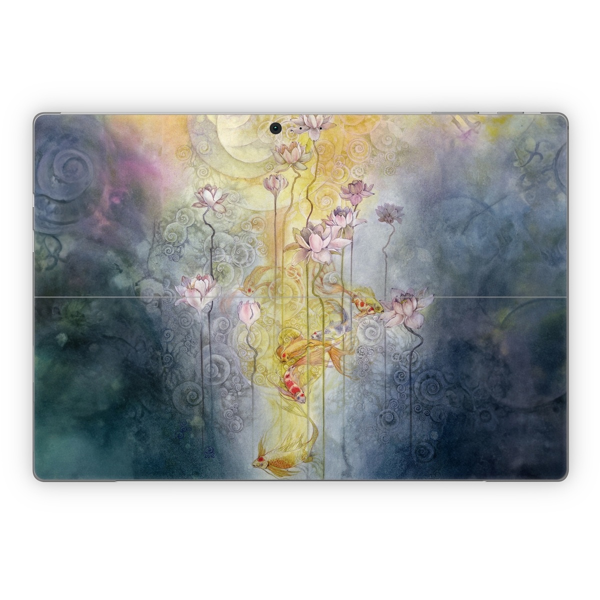 iStyles Microsoft Surface Pro Series Skin design of Watercolor paint, Painting, Art, Yellow, Flower, Acrylic paint, Floral design, Visual arts, Modern art, Illustration, with blue, red, orange, pink, yellow colors, and tagged with animals, flowers, fish, flowers, lotus.
