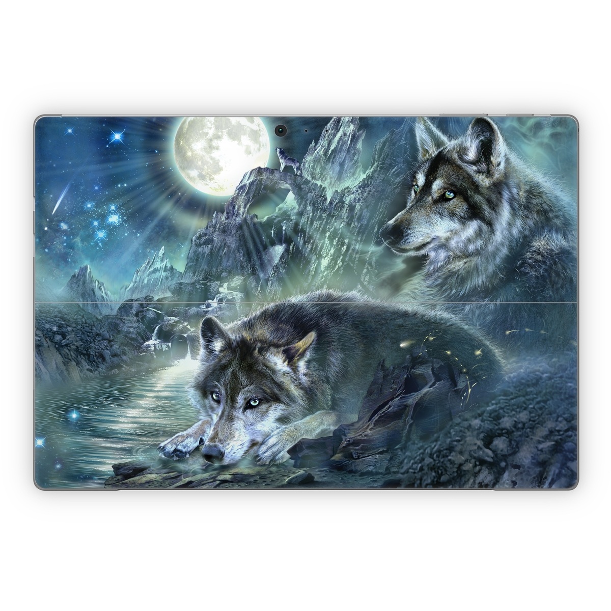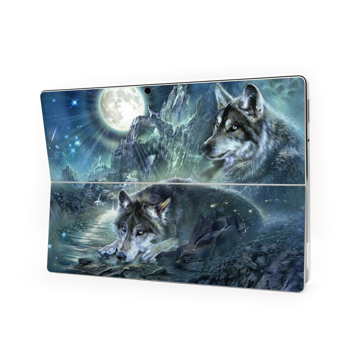 iStyles Microsoft Surface Pro Series Skin design of Cg artwork, Fictional character, Darkness, Werewolf, Illustration, Wolf, Mythical creature, Graphic design, Dragon, Mythology, with black, blue, gray, white colors, and tagged with animals, space.