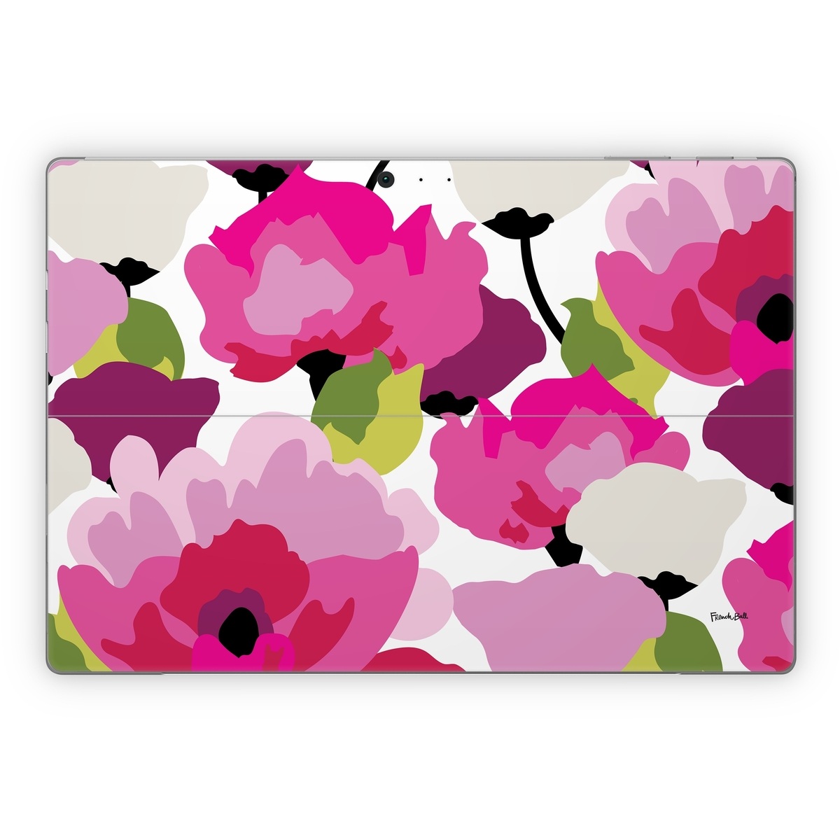 iStyles Microsoft Surface Pro Series Skin design of Pink, Flower, Pattern, Petal, Plant, Floral design, Design, Botany, Magenta, Anemone, with white, pink, green, red colors, and tagged with patterns, flowers, flower, flowers, pattern.