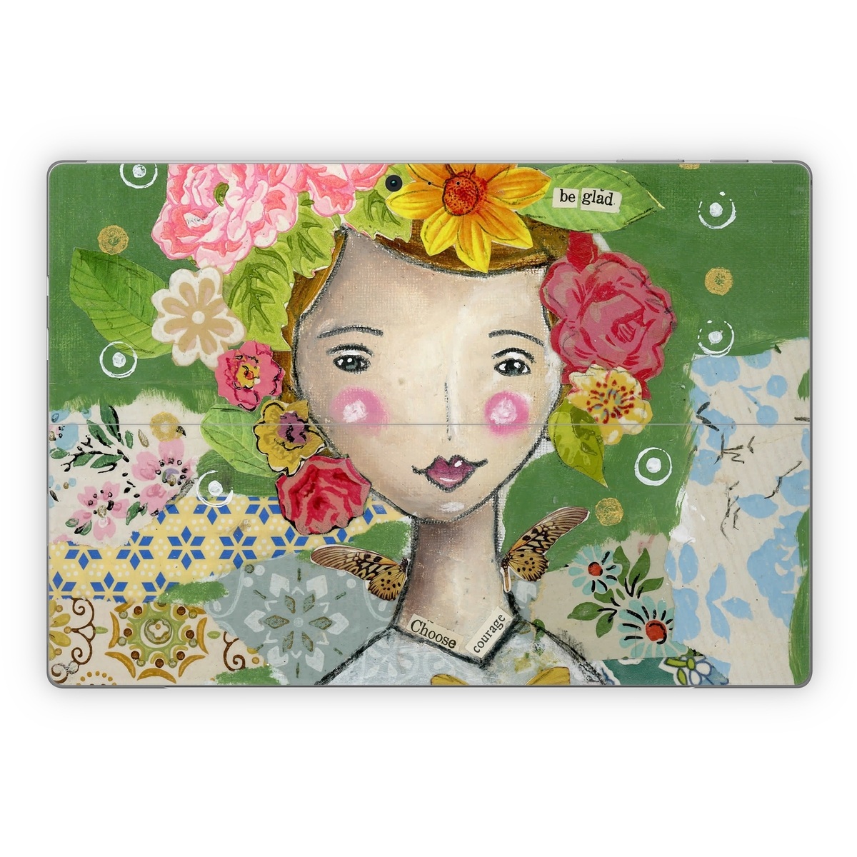 iStyles Microsoft Surface Pro Series Skin design of Watercolor paint, Illustration, Art, Painting, Plant, Flower, Visual arts, Paint, Child art, Acrylic paint, with green, pink, red, orange, white, blue, brown colors, and tagged with flowers, patterns, animals, people.