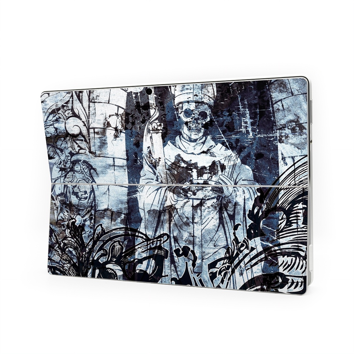 iStyles Microsoft Surface Pro Series Skin design of Illustration, Art, Monochrome, Visual arts, Drawing, Black-and-white, Graphic design, Fictional character, Fiction, Sketch, with white, black, blue, gray colors, and tagged with skulls.