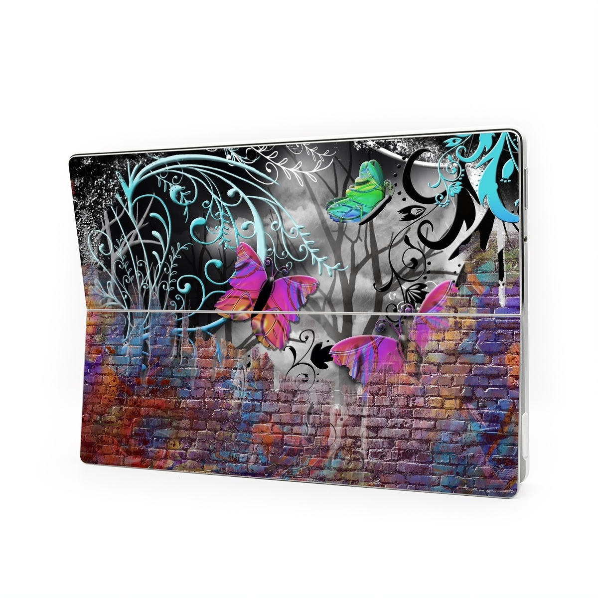 iStyles Microsoft Surface Pro Series Skin design of Purple, Graphic design, Art, Pattern, Graffiti, Organism, Street art, Wall, Font, Illustration, with red, black, gray, purple, orange, blue, green colors, and tagged with abstract, animals.
