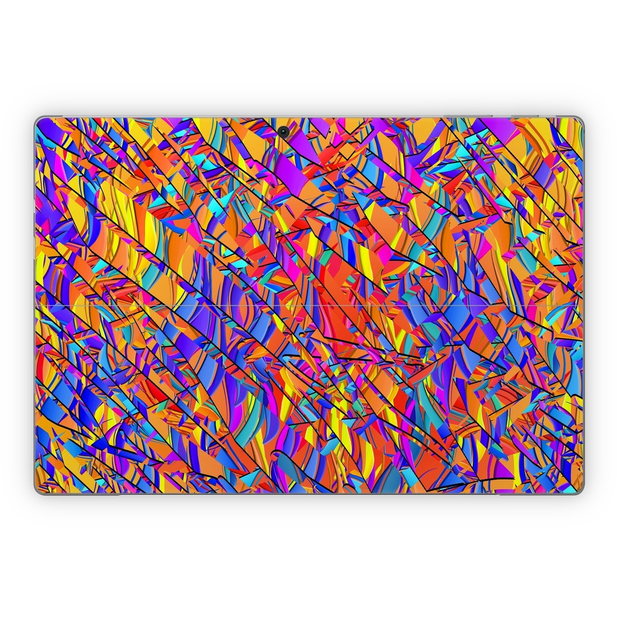 iStyles Microsoft Surface Pro Series Skin design of Pattern, Psychedelic art, Line, Visual arts, Art, with orange, yellow, blue, purple, pink colors, and tagged with patterns, bright, color, geometry, rainbow, stainedglass.