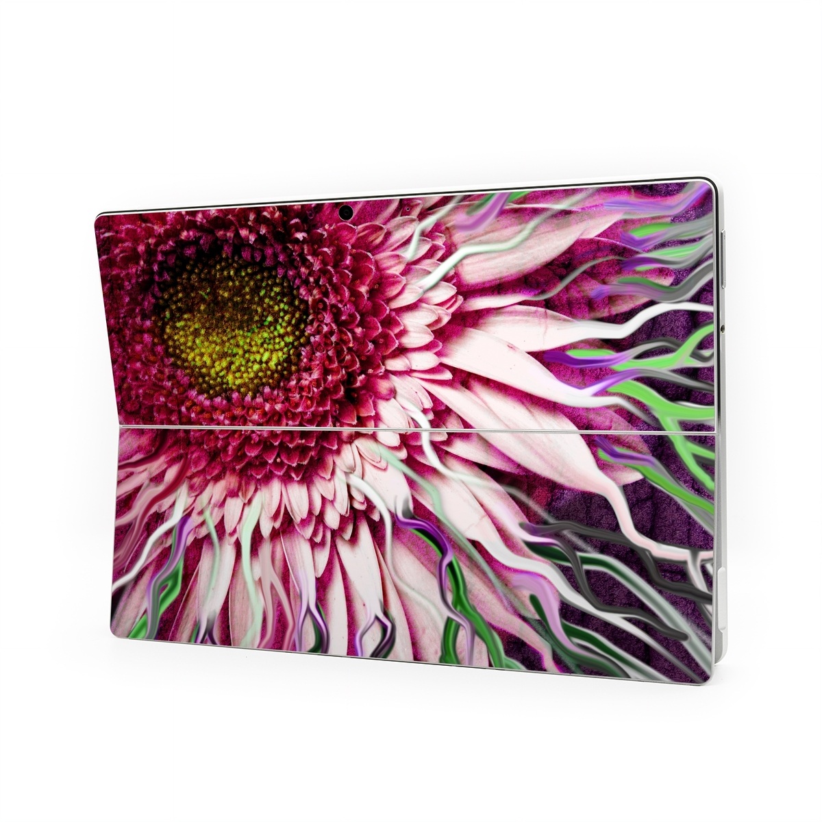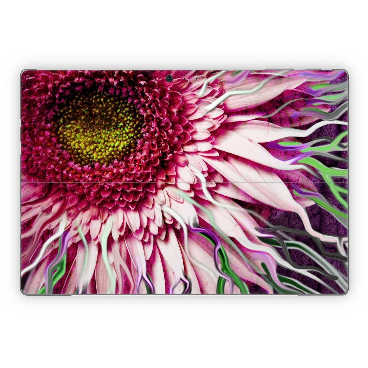 iStyles Microsoft Surface Pro Series Skin design of Flowering plant, Flower, Petal, Plant, Purple, Pink, Gazania, Violet, Gerbera, Chrysanths, with black, gray, red, purple, pink, white colors, and tagged with flowers, photos.