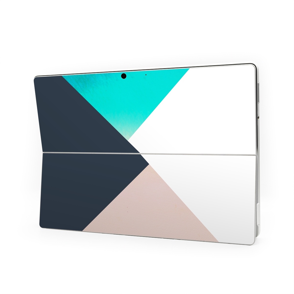 iStyles Microsoft Surface Pro Series Skin design of Blue, Turquoise, Aqua, Line, Triangle, Design, Material property, Graphic design, Pattern, Architecture, with black, white, brown, blue colors, and tagged with patterns, block, blocking, color, colorblock, geometric, shape, simple.