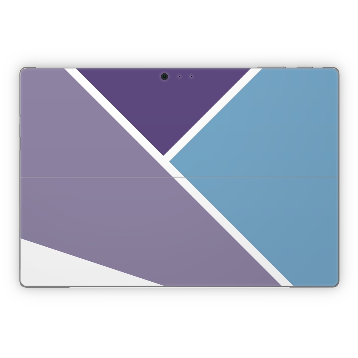 iStyles Microsoft Surface Pro Series Skin design of Violet, Purple, Turquoise, Line, Pattern, Design, Graphic design, Font, Triangle, Magenta, with white, blue, purple colors, and tagged with patterns, block, blocking, color, colorblock, geometric, shape, simple.