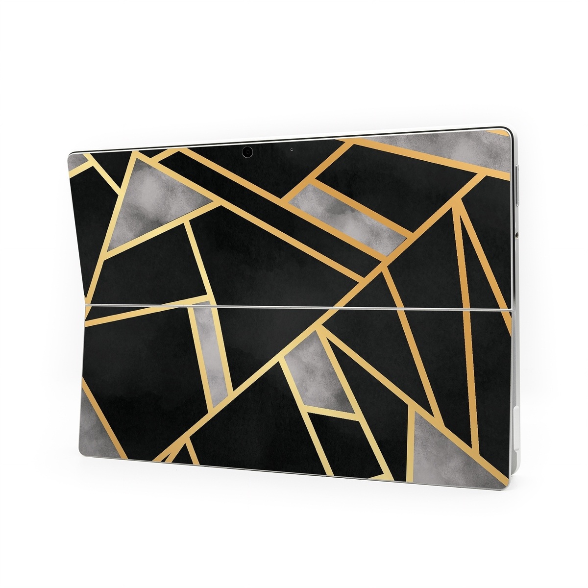 iStyles Microsoft Surface Pro Series Skin design of Pattern, Triangle, Yellow, Line, Tile, Floor, Design, Symmetry, Architecture, Flooring, with black, gray, yellow colors, and tagged with patterns.