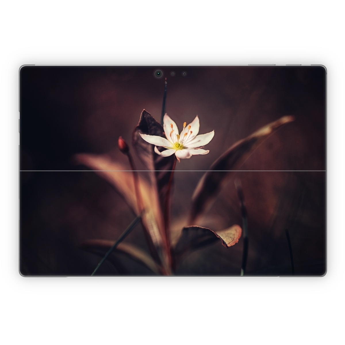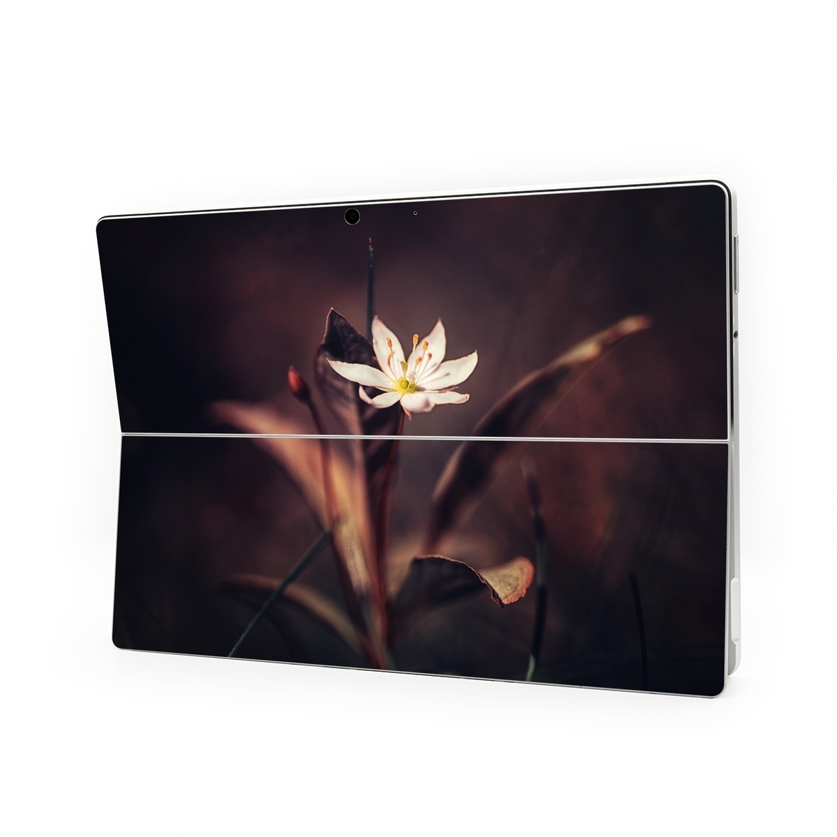 iStyles Microsoft Surface Pro Series Skin design of Flower, Yellow, Light, Plant, Sky, Still life photography, Wildflower, Petal, Darkness, Spring, with black, red colors, and tagged with nature, flowers.