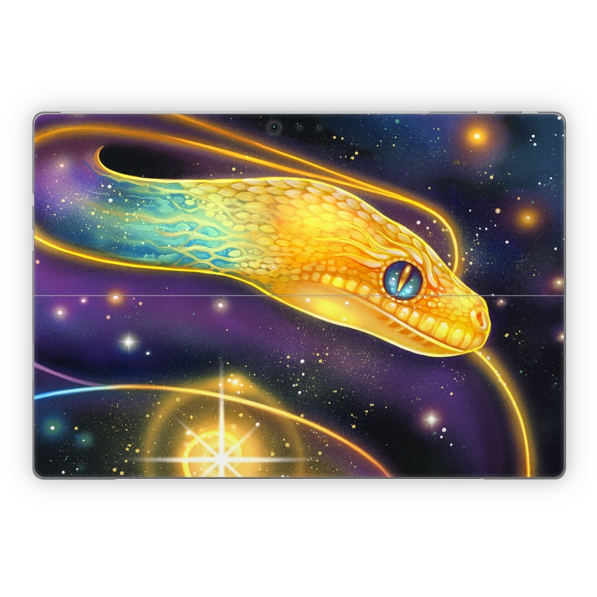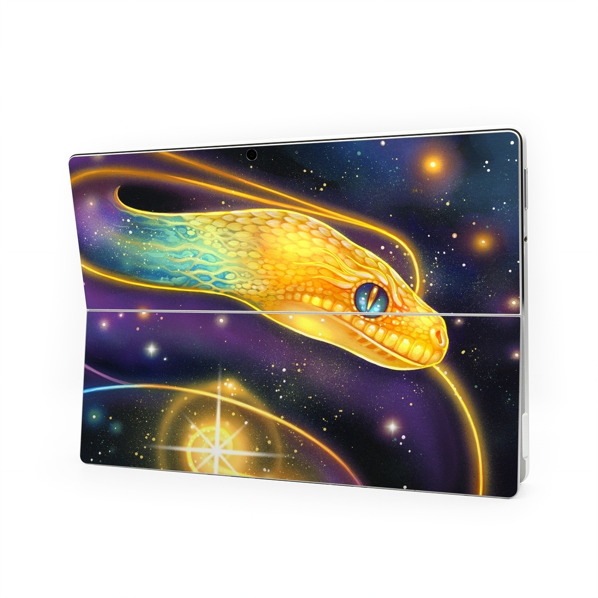 iStyles Microsoft Surface Pro Series Skin design of Atmosphere, Light, Organism, Art, Font, Astronomical object, Galaxy, Star, Science, Nebula, with black, white, yellow, orange, green, purple colors, and tagged with fantasy, animals, space, snake, stars, constellations, sun.