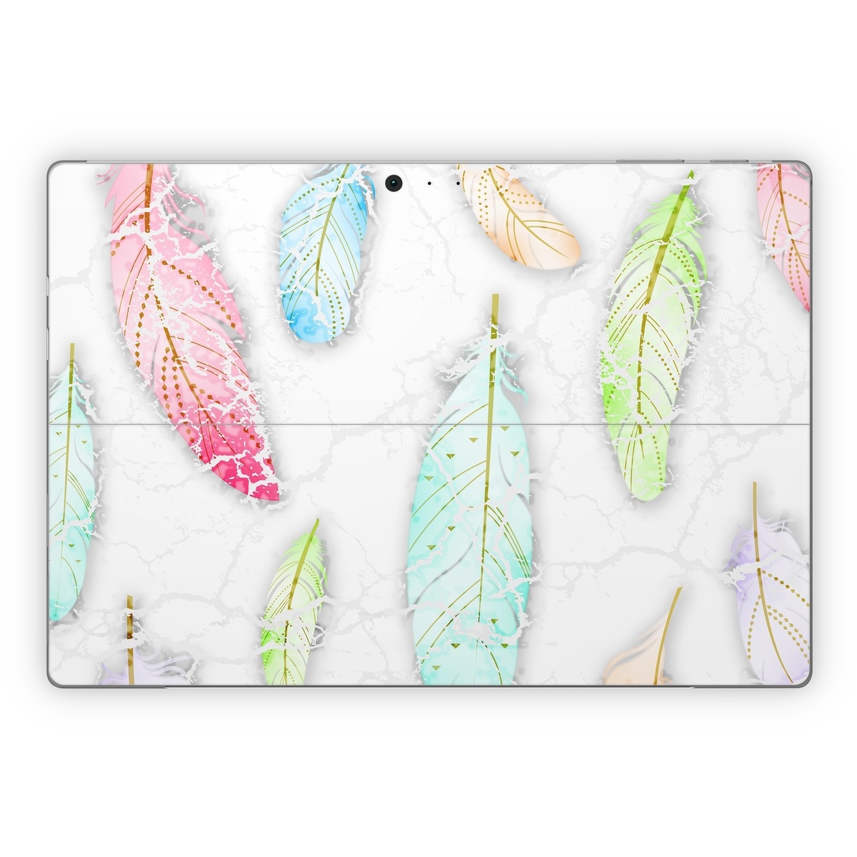 iStyles Microsoft Surface Pro Series Skin design of Feather, Fashion accessory, Jewellery, with red, blue, green, purple, white, brown colors, and tagged with patterns, objects, aztec, color, feather, feathers, marble, pastel, watercolor.