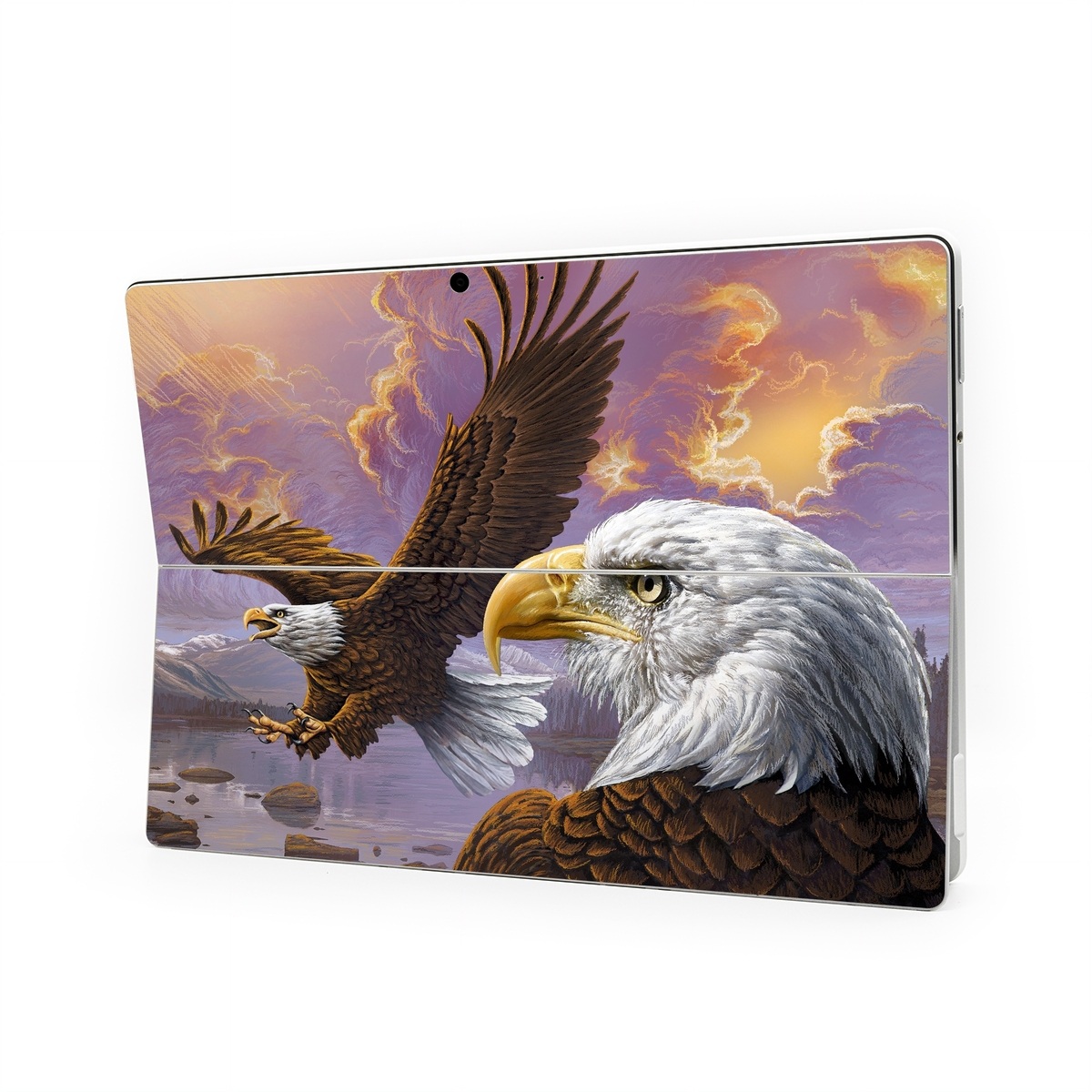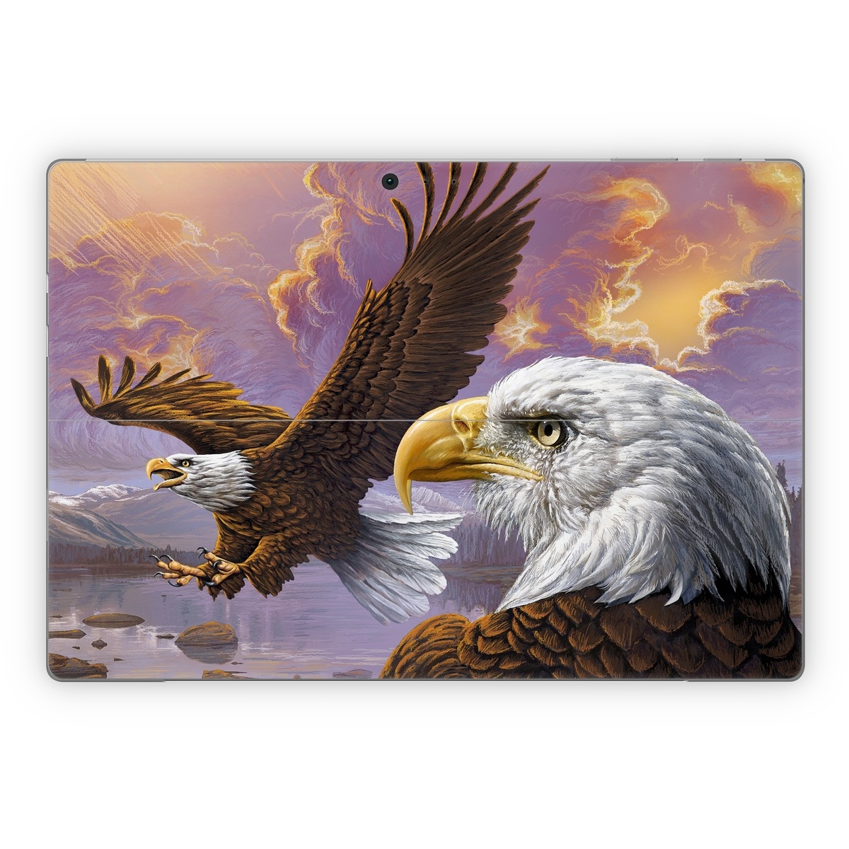 iStyles Microsoft Surface Pro Series Skin design of Bird, Bird of prey, Bald eagle, Vertebrate, Eagle, Accipitriformes, Accipitridae, Golden eagle, Beak, Hawk, with gray, black, green, red, purple colors, and tagged with animals, nature.