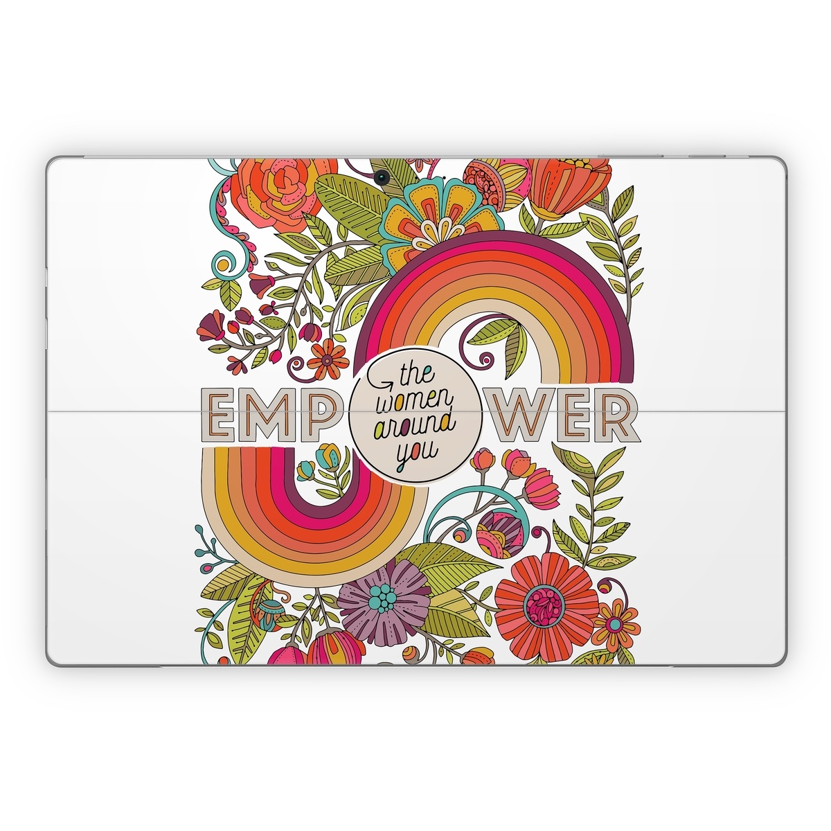 iStyles Microsoft Surface Pro Series Skin design of Botany, Flower, Font, Creative arts, Petal, Circle, Pattern, Art, Visual arts, Floral design, with white, red, yellow, orange, green, blue colors, and tagged with flowers, signs, flowers, rainbow, empower, women, around, you.