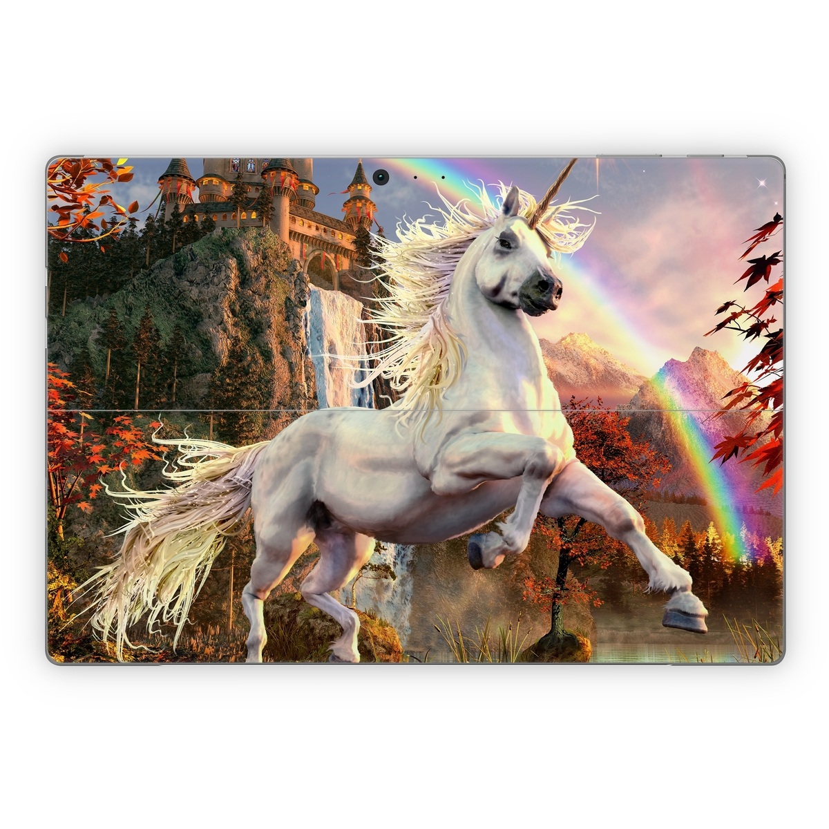 iStyles Microsoft Surface Pro Series Skin design of Nature, Unicorn, Fictional character, Sky, Mythical creature, Mythology, Cg artwork, Horse, Mane, Wildlife, with black, gray, red, green, blue colors, and tagged with animals, fantasy, nature, urban.
