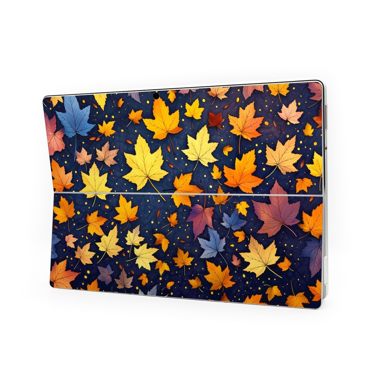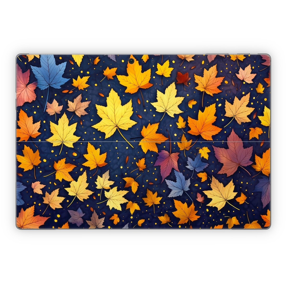 iStyles Microsoft Surface Pro Series Skin design of Orange, Line, Pattern, Electric blue, Symmetry, Groundcover, Flowering plant, Design, Flower, Art, with yellow, orange, red, black, blue, purple colors, and tagged with nature, patterns, autumn, fall, leaves.