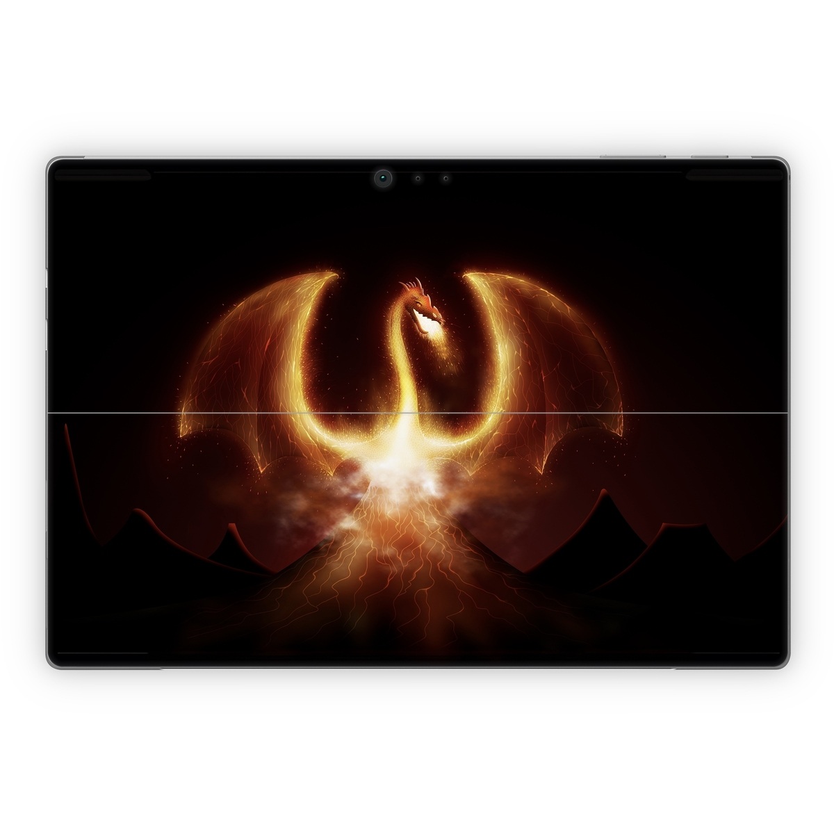 iStyles Microsoft Surface Pro Series Skin design of Light, Atmosphere, Orange, Space, Heat, Sky, Darkness, Art, Geological phenomenon, Universe, with black, red, green, pink colors, and tagged with flames, fantasy.