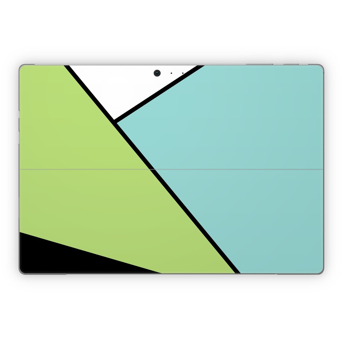 iStyles Microsoft Surface Pro Series Skin design of Green, Line, Blue, Triangle, Design, Parallel, Pattern, Graphic design, Slope, with white, black, green, blue colors, and tagged with patterns, block, blocking, color, colorblock, geometric, shape, simple.
