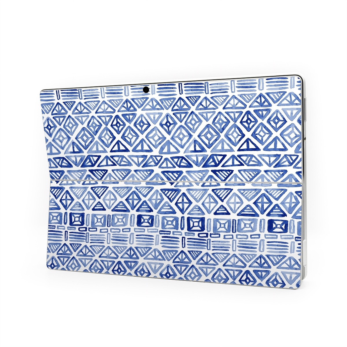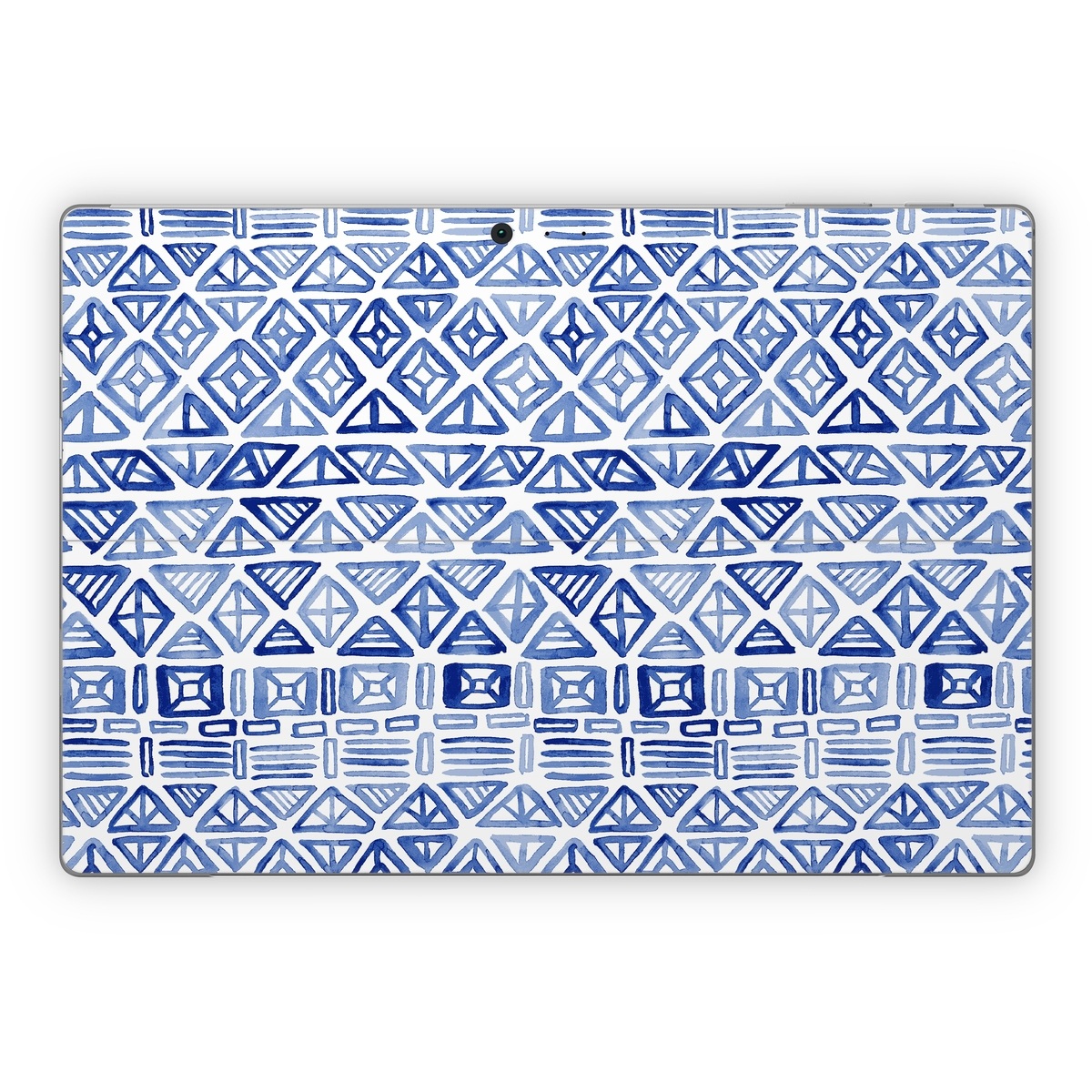 iStyles Microsoft Surface Pro Series Skin design of Pattern, Line, Design, Symmetry, Visual arts, Parallel, with white, blue colors, and tagged with patterns, blue, geometric, magpiemoon, pattern, tribal, watercolor, white.