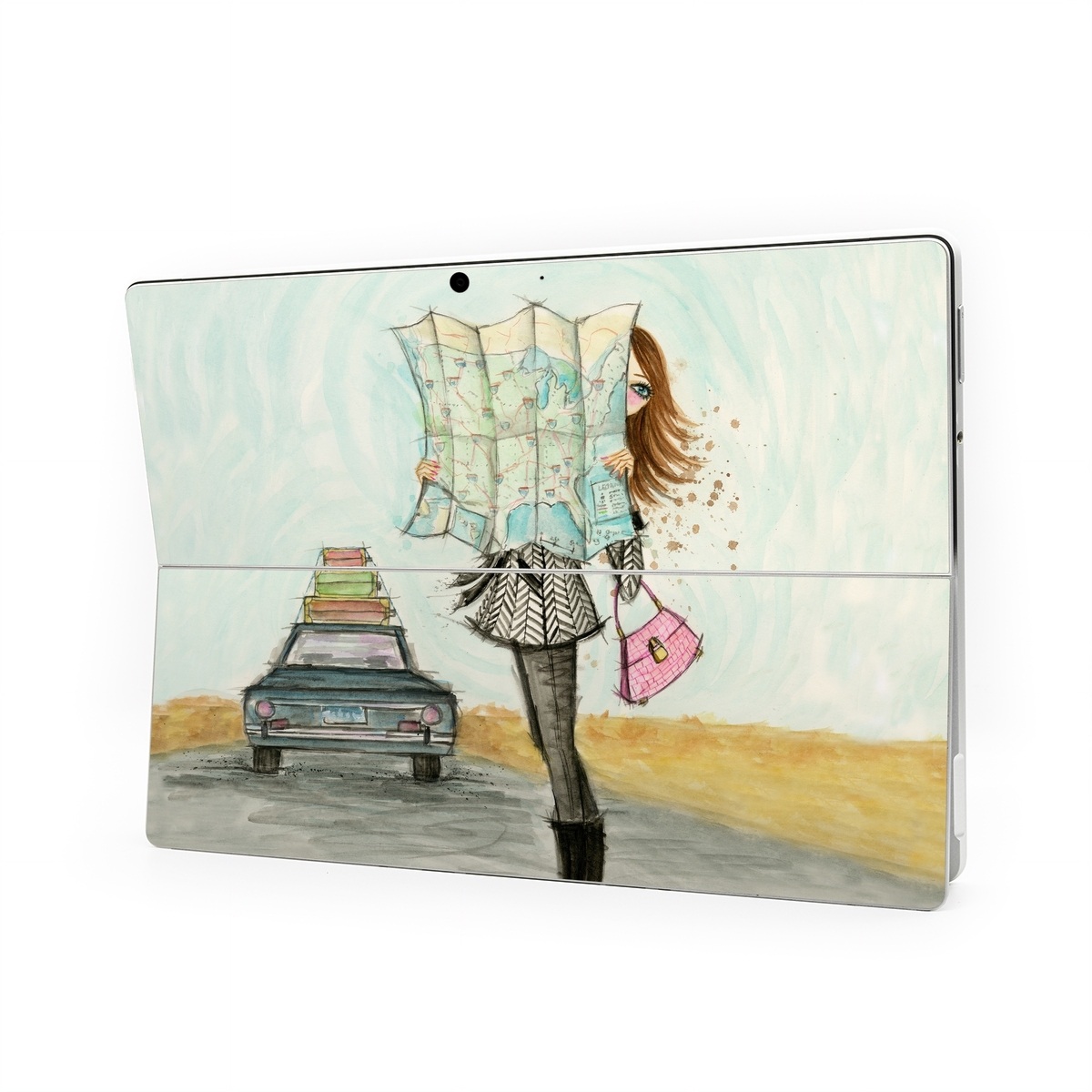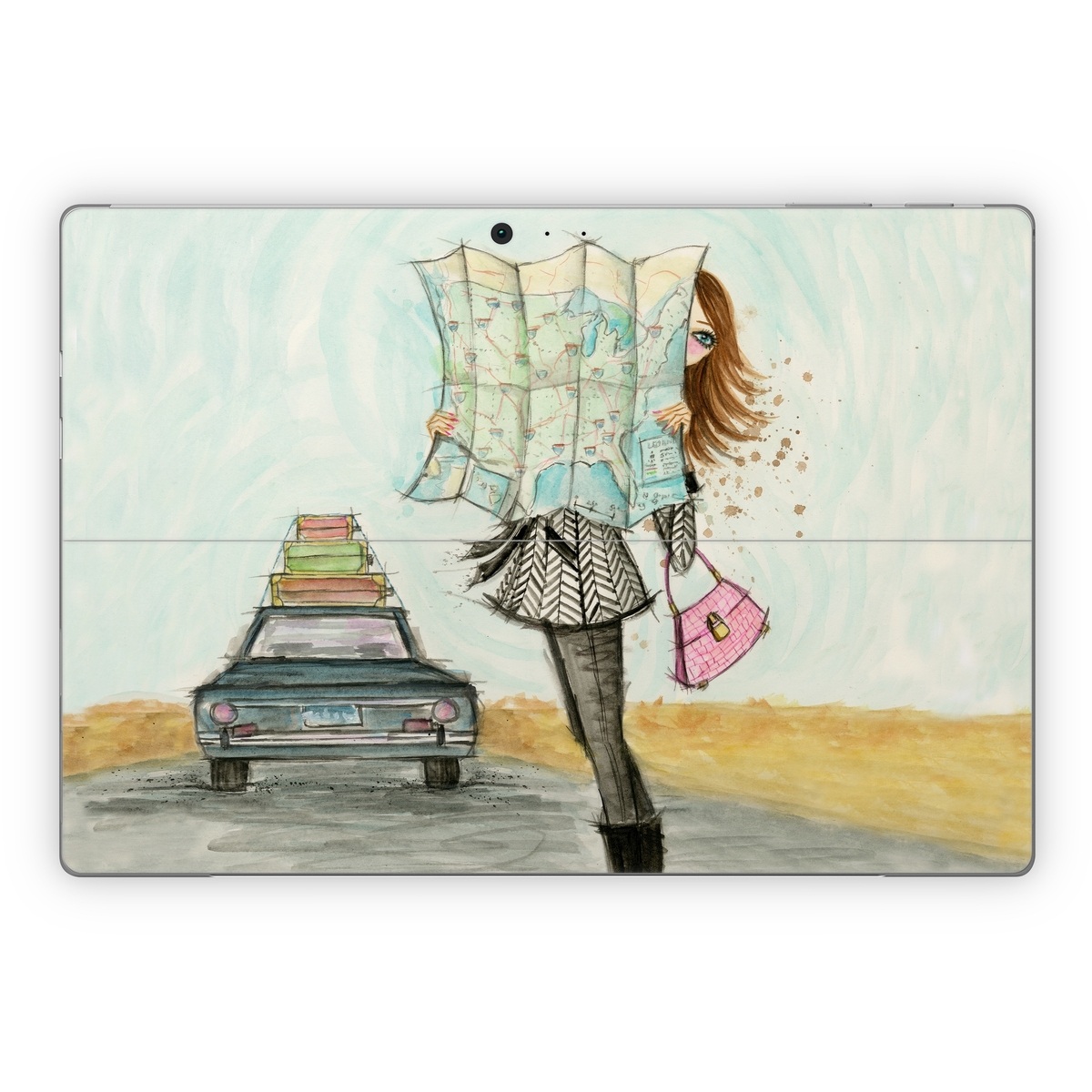 iStyles Microsoft Surface Pro Series Skin design of Fashion illustration, Sketch, Watercolor paint, Illustration, Drawing, Art, Footwear, Vehicle, Painting, Fashion design, with blue, black, gray, white, pink, brown, green, orange, yellow colors, and tagged with people, fineart, objects, fashion, maps, adventure, driving, fashion, map, roadtrip.