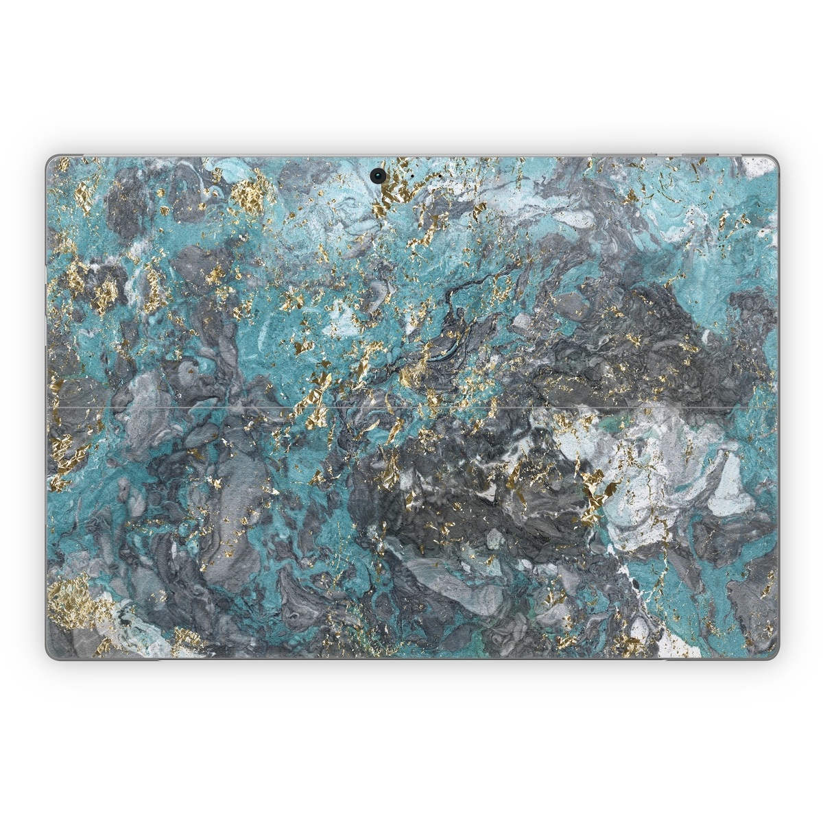 iStyles Microsoft Surface Pro Series Skin design of Blue, Turquoise, Green, Aqua, Teal, Geology, Rock, Painting, Pattern, with black, white, gray, green, blue colors, and tagged with patterns, lookslike, nature.