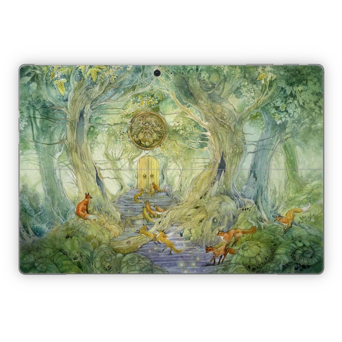 iStyles Microsoft Surface Pro Series Skin design of Painting, Art, Mythology, Visual arts, Watercolor paint, Organism, Fictional character, Modern art, Landscape, Acrylic paint, with green, brown, red, yellow, blue, purple colors, and tagged with animals, nature, fantasy, animals, forest, fox, landscape, sci-fi, woods.