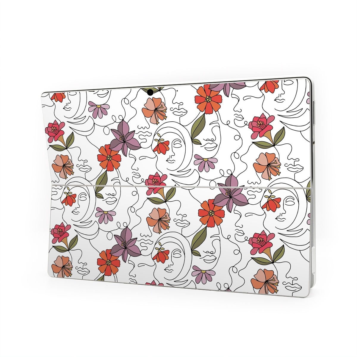 iStyles Microsoft Surface Pro Series Skin design of Flower, Plant, White, Product, Petal, Branch, Rectangle, Botany, Textile, Creative arts, with white, red, purple, green, orange colors, and tagged with patterns, flowers, people, drawing, flowers, outline, pattern, women.