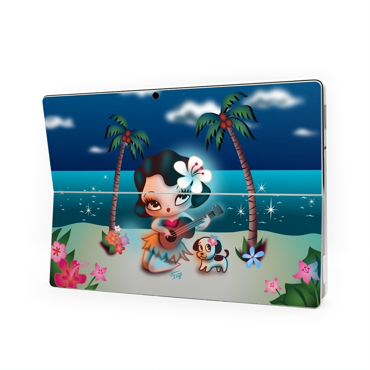 iStyles Microsoft Surface Pro Series Skin design of Cartoon, Animated cartoon, Illustration, Animation, Fictional character, Plant, Art, Clip art, with blue, white, brown, pink, green, yellow, red colors, and tagged with animals, objects, flowers, nature, people, beach, cartoon, flower, flowers, hawaii, hawaiian, hula, ocean, pinup, pinupgirl, tropic, tropical.