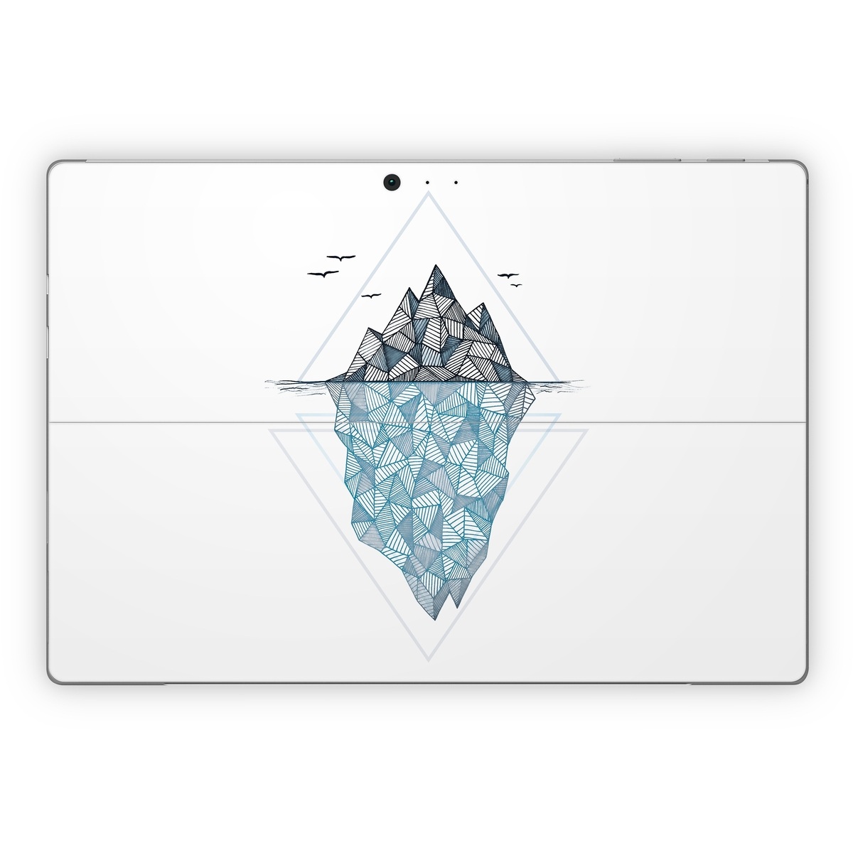 iStyles Microsoft Surface Pro Series Skin design of Line, Illustration, Design, Symmetry, Pattern, Triangle, Art, with white, black, gray, blue colors, and tagged with animals, nature, patterns, arctic, blue, cold, frost, ice, iceberg, snow, winter.