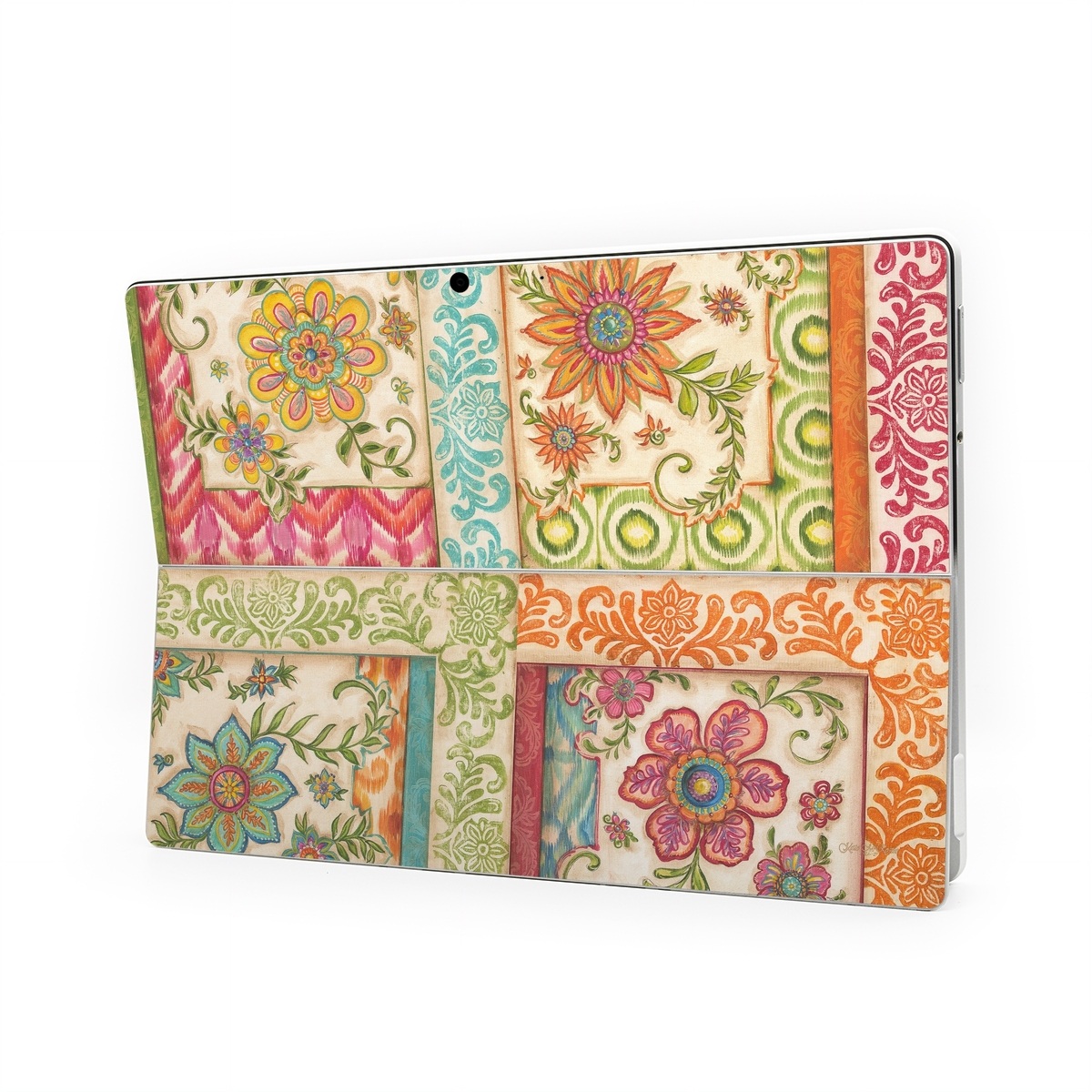 iStyles Microsoft Surface Pro Series Skin design of Flower, Rectangle, Plant, Botany, Textile, Aqua, Art, Pattern, Symmetry, Motif, with red, orange, green, blue, pink, yellow colors, and tagged with fineart, patterns, flowers, flower, patterns, painting, drawing.