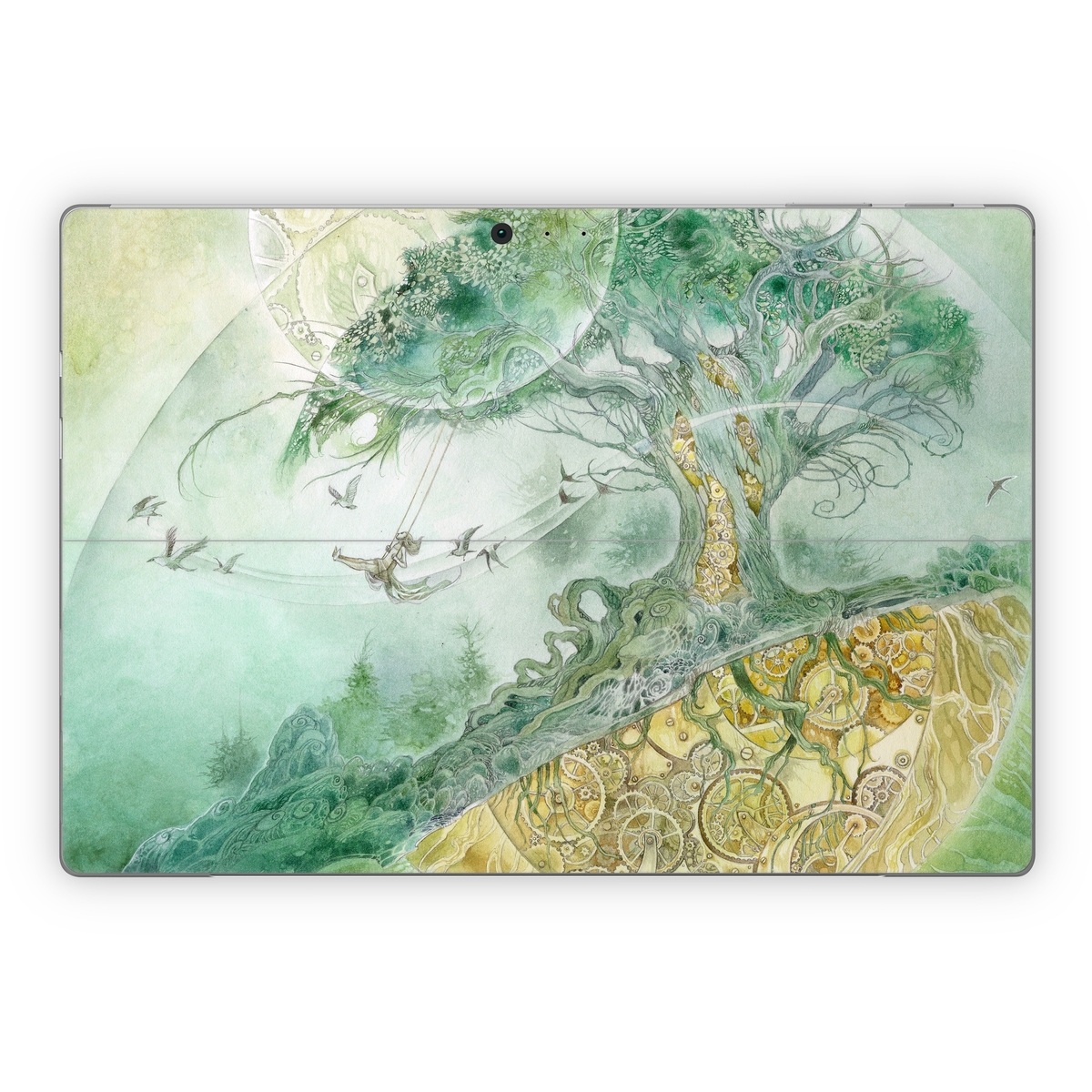 iStyles Microsoft Surface Pro Series Skin design of Illustration, Organism, Art, World, Fictional character, with green, yellow, brown colors, and tagged with animals, nature, people, objects, birds, gears, swing, tree.