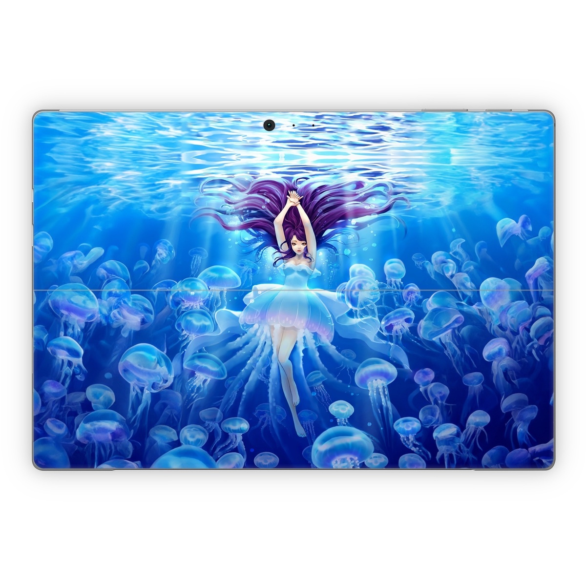 iStyles Microsoft Surface Pro Series Skin design of Jellyfish, Cnidaria, Organism, Marine biology, Marine invertebrates, Water, Bioluminescence, Illustration, Electric blue, Fictional character, with blue, purple, gray colors, and tagged with fantasy, people, aquatic, blue, jellyfish, ocean, sea, sealife.