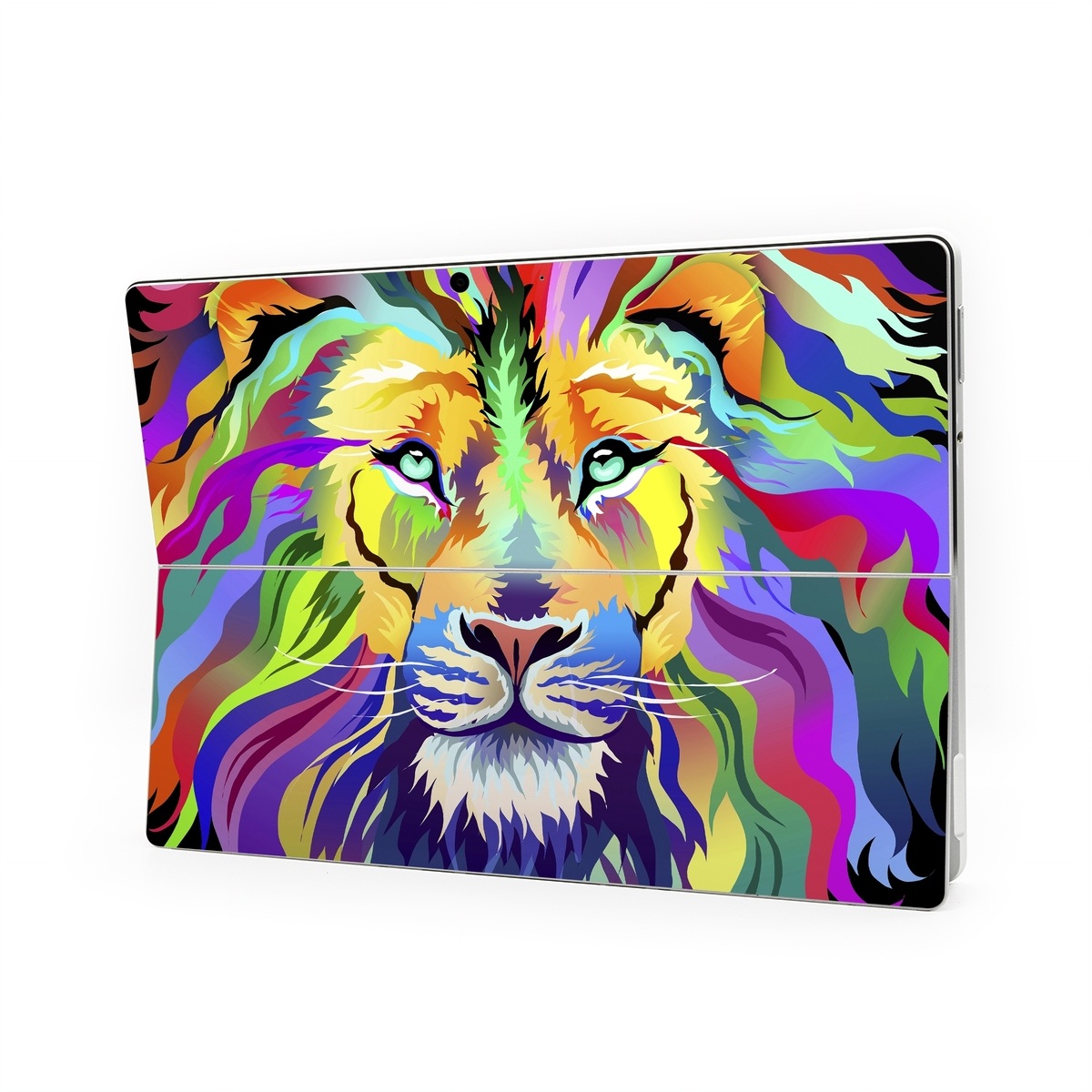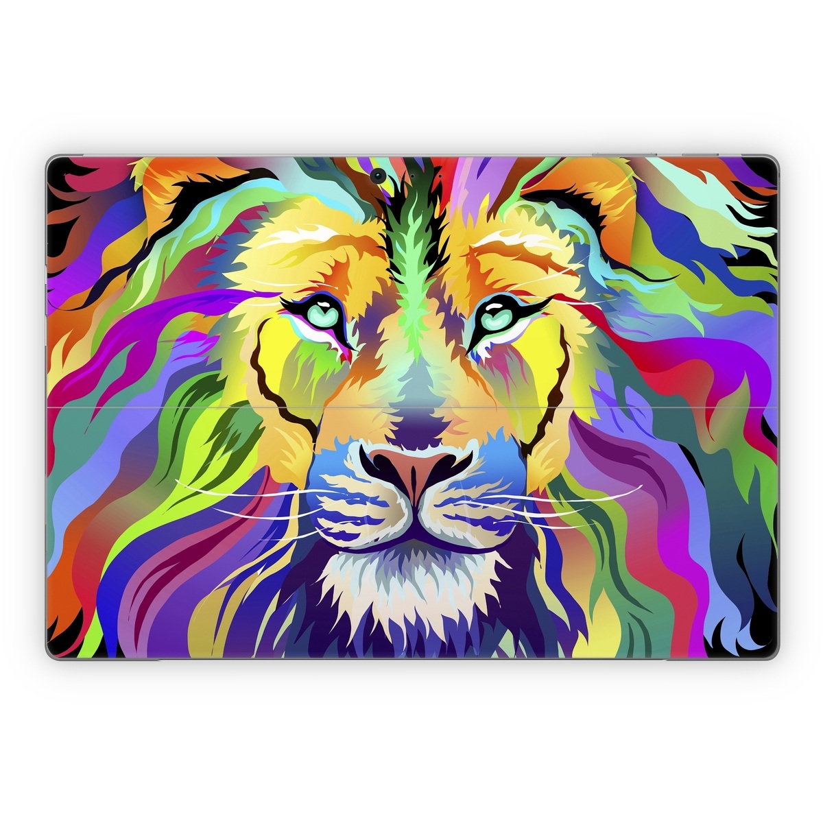 iStyles Microsoft Surface Pro Series Skin design of Bengal tiger, Felidae, Lion, Wildlife, Big cats, Tiger, Carnivore, Art, Illustration, Painting, with orange, yellow, green, red, pink, blue, purple colors, and tagged with animals.