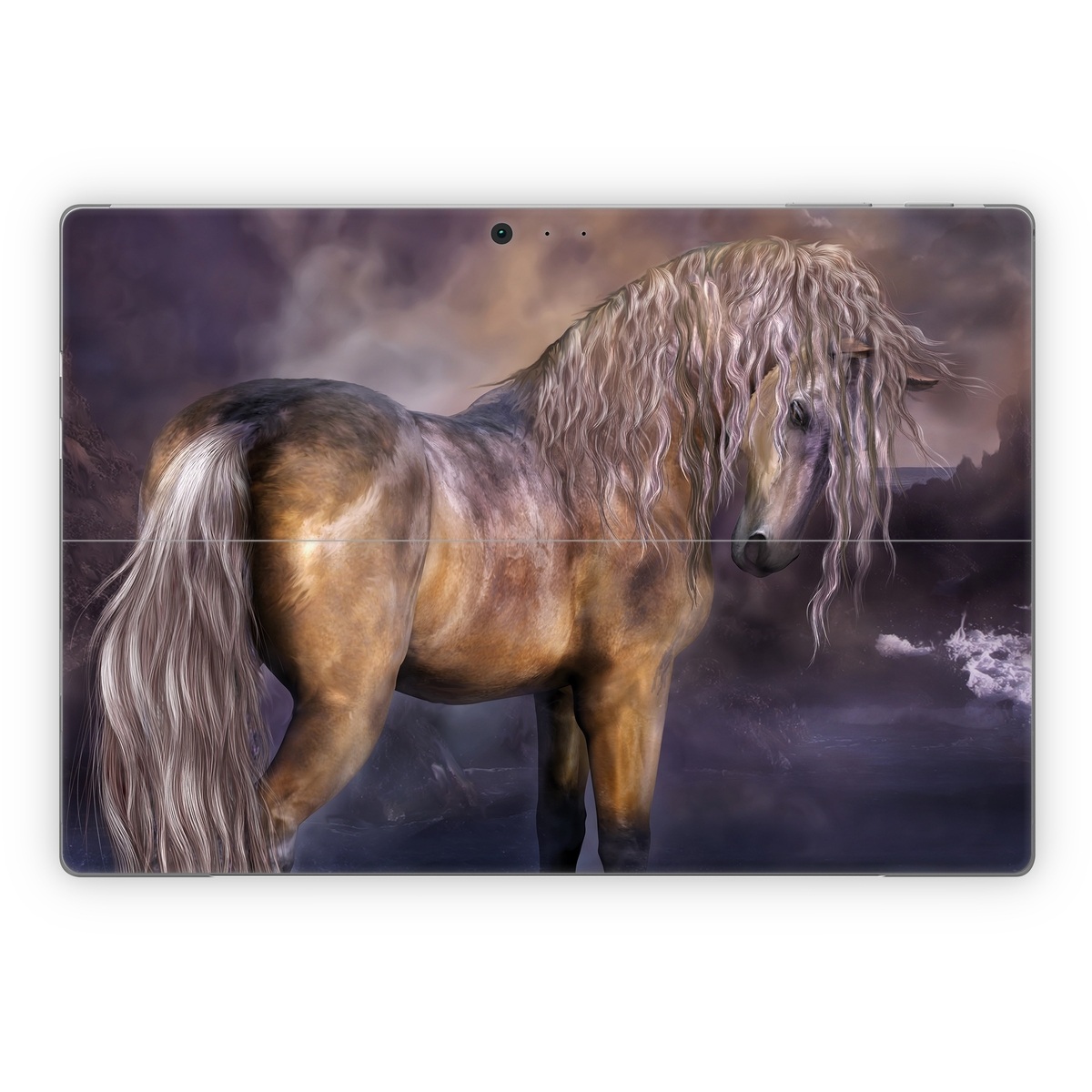 iStyles Microsoft Surface Pro Series Skin design of Horse, Mane, Stallion, Mustang horse, Fictional character, Mare, Painting, Wildlife, Mythical creature, with black, gray, red, blue, green colors, and tagged with animals, nature, animals, horse, nature.