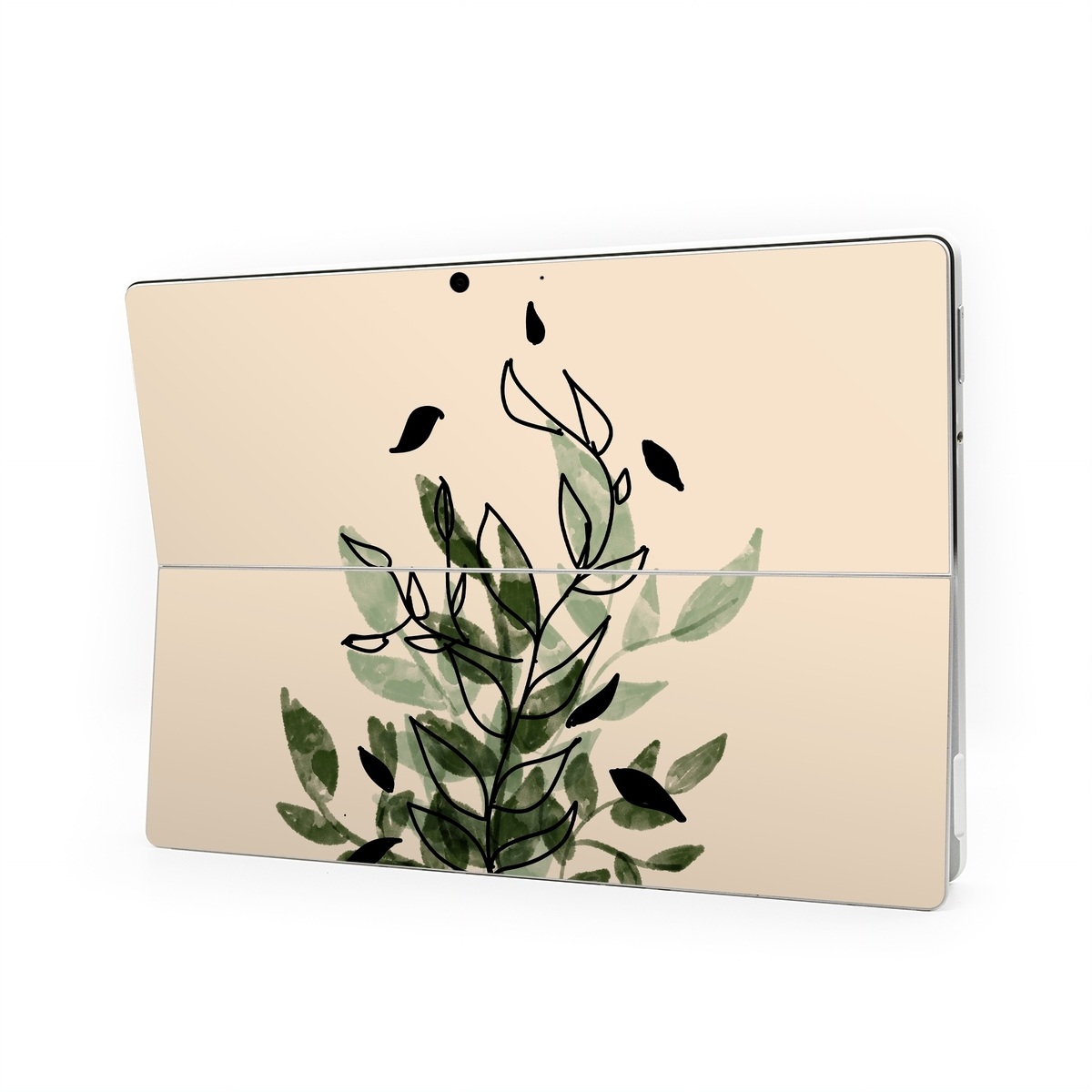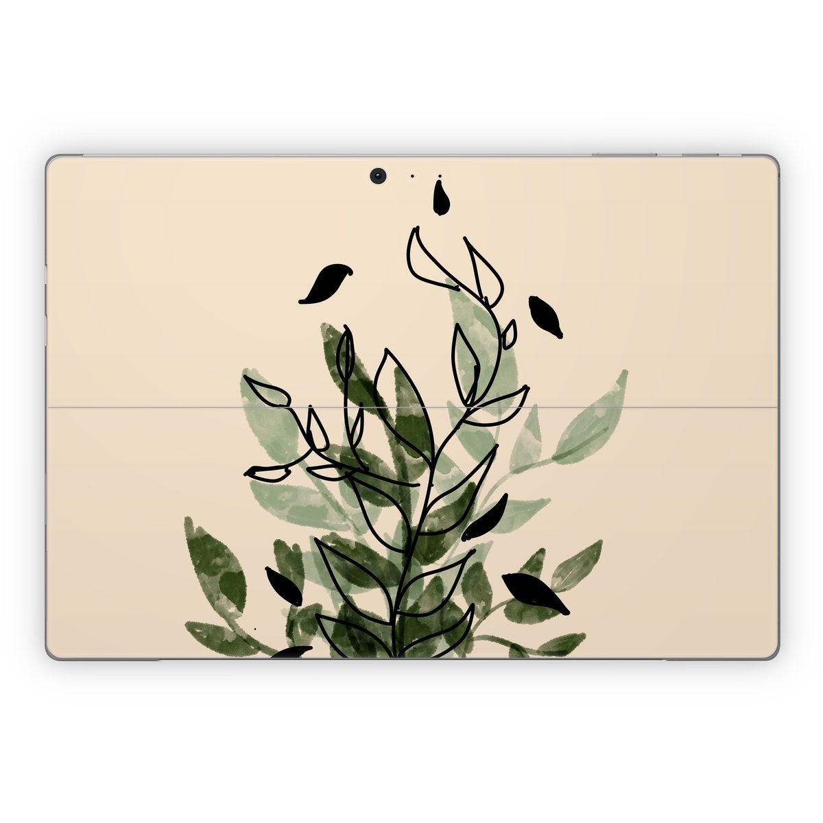 iStyles Microsoft Surface Pro Series Skin design of Leaf, Plant, Botany, Branch, Flower, Plant Stem, Pedicel, Twig, Illustration, with green, black, brown colors, and tagged with abstract, nature, abstract, bohemian, boho, illustration, nature, plants.