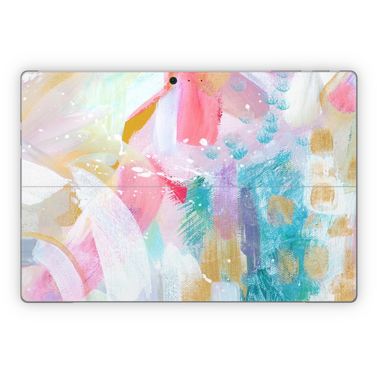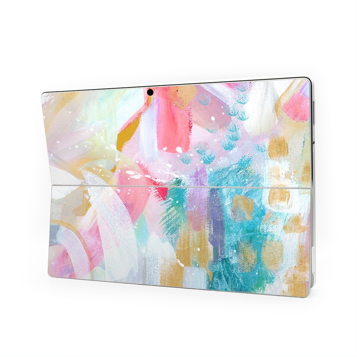 iStyles Microsoft Surface Pro Series Skin design of Colorfulness, Art paint, Paint, Pink, Creative arts, Art, Aqua, Magenta, Tints and shades, Font, with white, blue, pink, purple, green, yellow colors, and tagged with abstract, absrtact, brush, brushstrokes, gold, paint, painting, pastel, splatter, stamps.